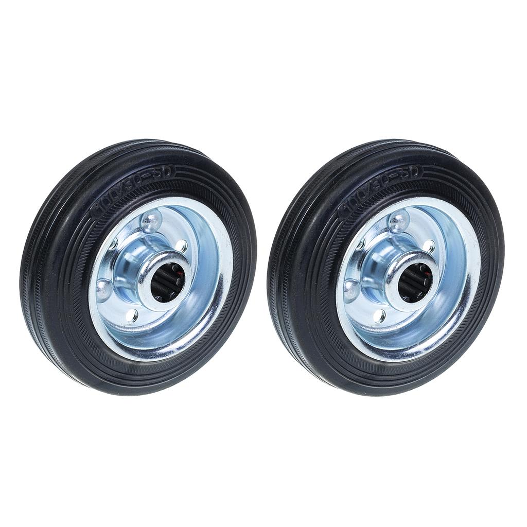 100 mm:n (4 tuuman) mustat kumipyörät, puristetusta teräksestä valmistettu keskiosa, kantavuus 90 kg – 2 kpl:n sarja