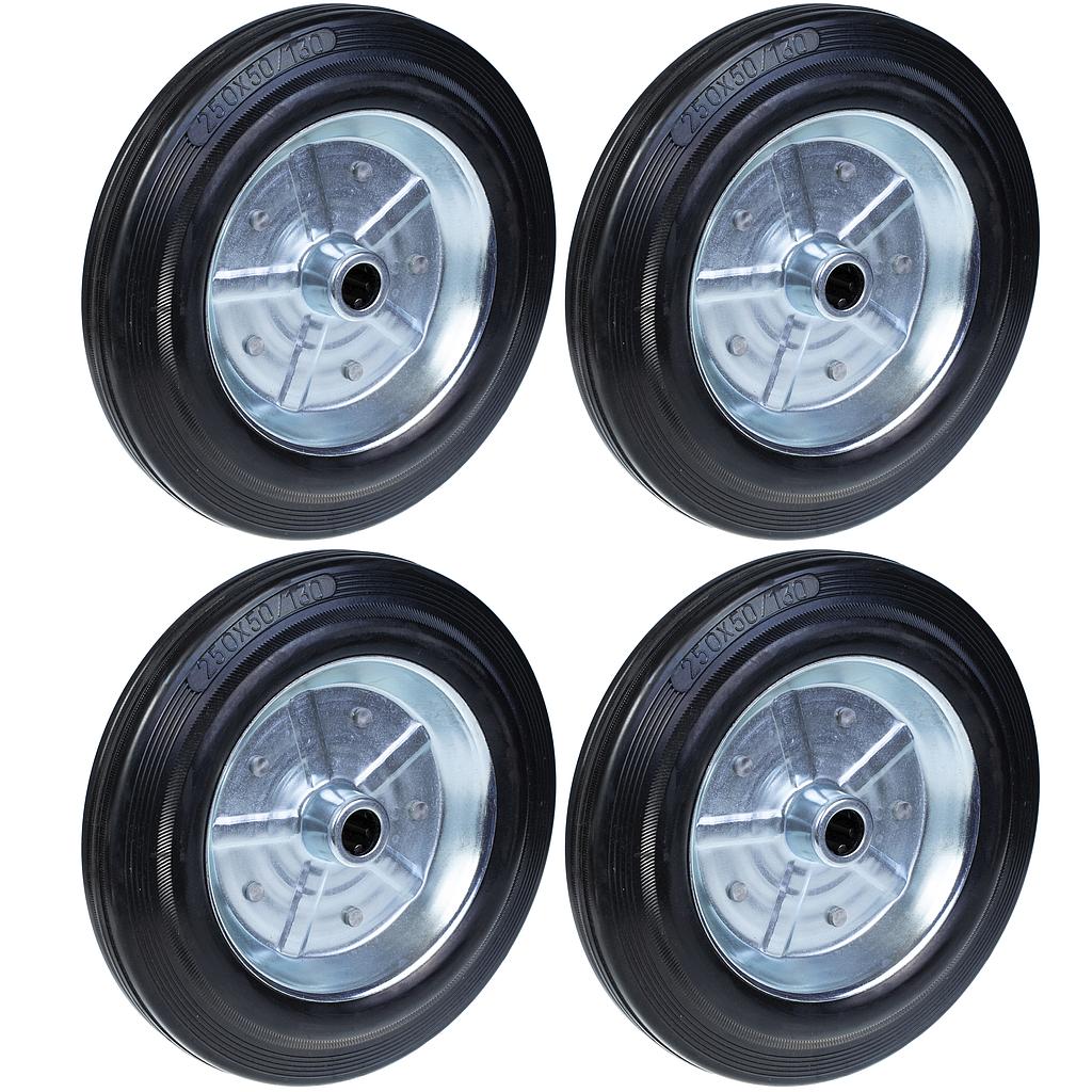250 mm:n (10 tuuman) musta kumipyörä, jossa on puristetusta teräksestä valmistettu 20 mm:n keskiöaukko, kantavuus 210 kg – sarja