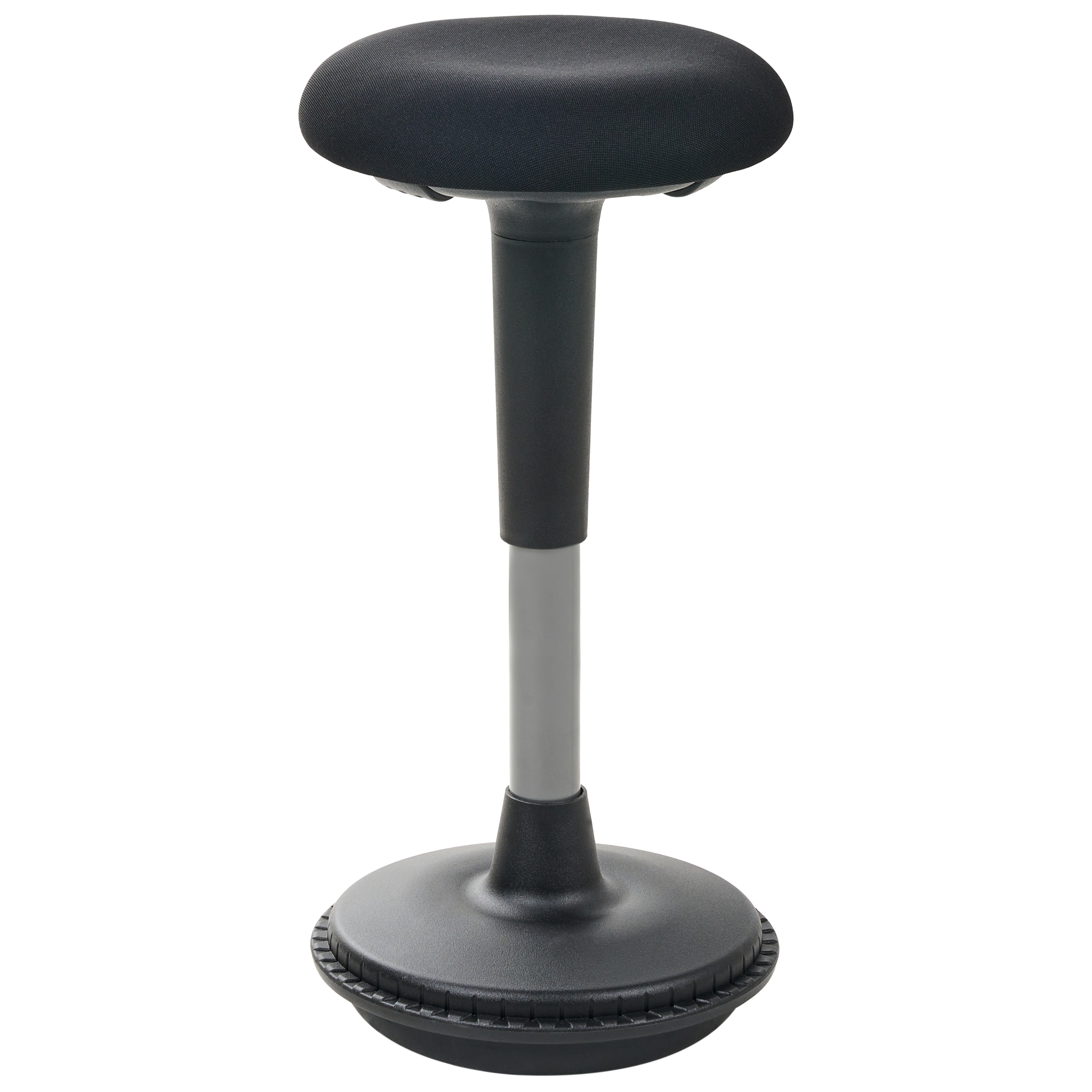 Ergonominen aktiivituoli kangasistuimella. Tämä moderni aktiivituoli on suunniteltu edistämään aktiivista istumista ja parantamaan ryhtiä koko päivän ajan. Säädettävä korkeus mahdollistaa helpon mukauttamisen erilaisten työpöytien korkeuksiin, mikä tekee tuolista erinomaisen sekä istuma- että seisoma-asentoihin. Istuin on verhoiltu laadukkaalla polyesterikankaalla, joka on mukavaa, kestävää ja helppohoitoista. Tukeva teräsrunko takaa pitkäikäisen vakauden ja edistää samalla keskivartalon lihasten käyttöä ja joustavuutta.Tuotetiedot: Tuotetyyppi: Aktiivituoli Tyyli: Moderni Pääväri: Musta Materiaali: Kangas Päämateriaali: Kangas Lisämateriaali: Teräs Jalkojen materiaali: Metalli Istuinmateriaali: Keinonahka Materiaaliyhdistelmä: 100% polyesteriä 360 Käännettävyys: Kyllä Osien säädettävyys: Istuinkorkeus Käsinojat: Ei Viimeistely: Jauhemaalattu Jalkojen suojat/ Pehmusteet: Ei Kallistettavuus: Ei Mitat: Syvyys: 33 cm Istuimen korkeus: 63-84 cm Leveys: 33 cm Korkeus: 63-84 cm Istuinala: 33x33 cm Paino: 9 kg Kantokyky: 150 kg Hintaan sisältyy: 1 x Aktiivituoli Ominaisuudet: 360° kääntyvä, Pneumaattinen istuinkorkeuden säätö, Korkealaatuiset materiaalit, Vankka rungon rakenne, Erityisen helppohoitoinen, Säädettävä korkeus Kokoaminen: Kokonaan koottava. 5-15 min. Hoito-ohjeet: Kangas: 1.Puhdista kuivashampoolla ja märällä sienellä tai miedolla puhdistusaineella 2.Imuroi sopivalla suuttimella. Teräs: 1.Puhdista miedolla puhdistusaineella ja pehmeällä liinalla, pyyhi sitten kuivaksi 2.Naarmujen välttämiseksi älä käytä hankaavia puhdistusaineita 3.Käytä kupari- tai kromielementteihin kiillotusainetta.