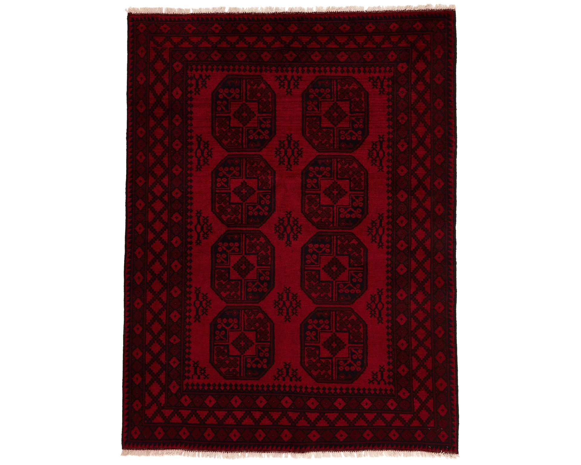 Aktscha-matot ovat käsinsolmittuja, korkeanukkaisia mattoja, jotka valmistetaan villan, vuohenkarvan ja hevosenjouhen sekoitteesta. Niille on ominaista lämpimän punainen pohjaväri ja geometriset Gül-kuviot. Solmutiheys on 50 000–150 000 solmua neliömetrillä, mikä antaa pinnalle jämäkän ja elävän ilmeen. Käyttämätön.