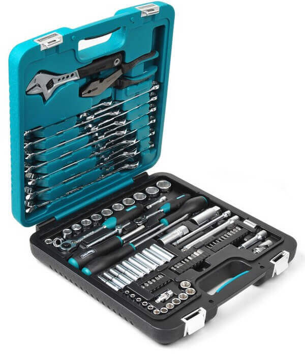 89-osainen asentajansarja sisältäen kattavan valikoiman Kamasa Toolsin parhaita työkaluja. Laukku sisältää 2 hylsyavainsarjaa (1/4" ja 3/8") ja runsaan valikoiman ruuvaustyökaluja, pitkiä kiintosilmukka-avaimia, pihtejä ja jakoavaimen, yhteensä 89 työkalua. Näillä työkaluilla selviää monista haasteista, pienistä ja suurista. Mitat: 350x350x85 mm 1/4" -sarja: Kuusikulmaiset hylsyt (12 osaa): 4, 4.5, 5, 5.5, 6, 7, 8, 9, 10, 11, 12, 13 mm Pitkät kuusikulmaiset hylsyt (9 osaa): 4, 5, 6, 7, 8, 9, 10, 12, 13 mm Räikkäavain (1 kpl): 140 mm T-väännin (1 kpl) Teräpalojen pidin (1 kpl): 1/4" × 1/4" Uraruuvitaltan teräpalat (3 osaa): 4, 5.5, 7 mm Phillipsin teräpalat (3 osaa), nro: PH1, PH2, PH3 Pozidrive-teräpalat (3 osaa), nro: PZD1, PZD2, PZD3 Kuusikulmaiset teräpalat (6 osaa): 3-8 mm Teräpalat Torx*-päille (11 osaa), nro: T5, T6, T7, T8, T10, T15, T20, T25, T27, T30, T40 1/4" teräpala ja hylsyvarsi (1 kpl) Jatkokappaleet: 50 ja 150 mm Yleisnivel (1 kpl) 3/8" -sarja: Kuusikulmaiset hylsyt (12 osaa): 10, 11, 12, 13, 14, 15, 16, 17, 18, 19, 20, 22 mm Räikkäavain (1 kpl): 205 mm Jatkokappaleet: 75 ja 150 mm Sytytystulppahylsyt (2 osaa): 16 ja 21 mm Yleisnivel (1 kpl) Muuta: Kiintosilmukka-avaimet, pitkä ja kiillotettu (13 osaa): 7-19 mm Jakoavain (1 kpl): 8" Phillips-ruuvitaltta nro: PH2 (1 kpl) Uraruuvitaltta (1 kpl): 6.5 x 150 Yhdistelmäpihdit: 180 mm (1 kpl)
