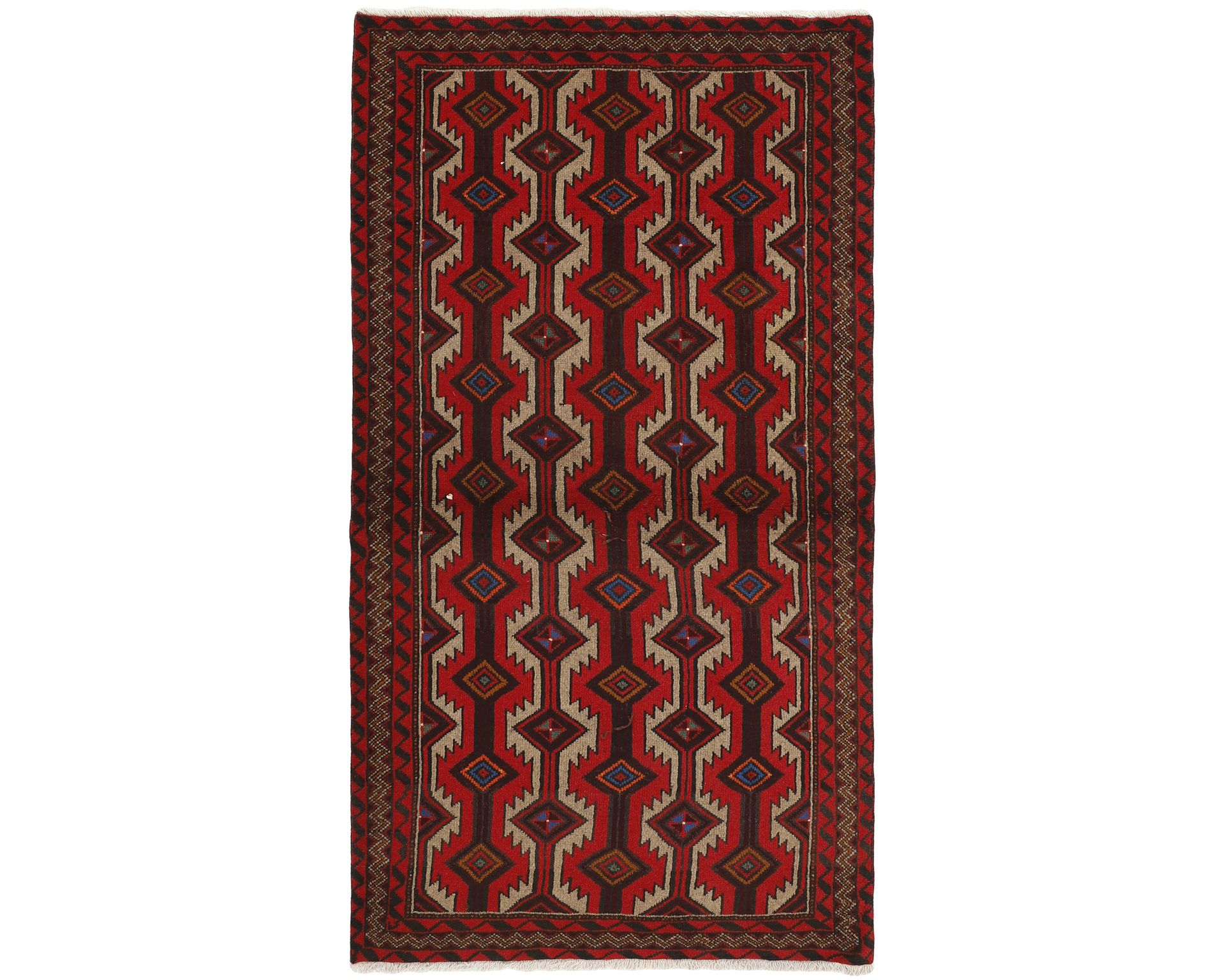 Balutch-matot tunnistaa kaarimaisista kuvioista ja tiiviistä sommittelusta. Kuviot koostuvat usein yksinkertaisista geometrisista elementeistä tai ruutumaisista rakenteista, ja toisinaan niissä esiintyy myös lintuja tai ihmishahmoja. Värimaailmaa hallitsevat syvänpunaiset sävyt, tummansininen ja valkoinen. Matot ovat käsinsolmittuja 100 % villasta, ja niiden solmutiheys vaihtelee 50 000–150 000 solmun välillä neliömetrillä. Käyttämätön.