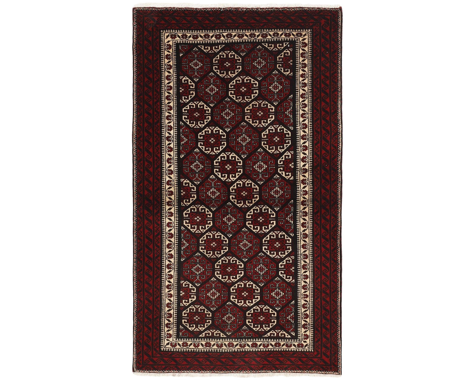 Balutch-matot tunnistaa kaarimaisista kuvioista ja tiiviistä sommittelusta. Kuviot koostuvat usein yksinkertaisista geometrisista elementeistä tai ruutumaisista rakenteista, ja toisinaan niissä esiintyy myös lintuja tai ihmishahmoja. Värimaailmaa hallitsevat syvänpunaiset sävyt, tummansininen ja valkoinen. Matot ovat käsinsolmittuja 100 % villasta, ja niiden solmutiheys vaihtelee 50 000–150 000 solmun välillä neliömetrillä. Käyttämätön.