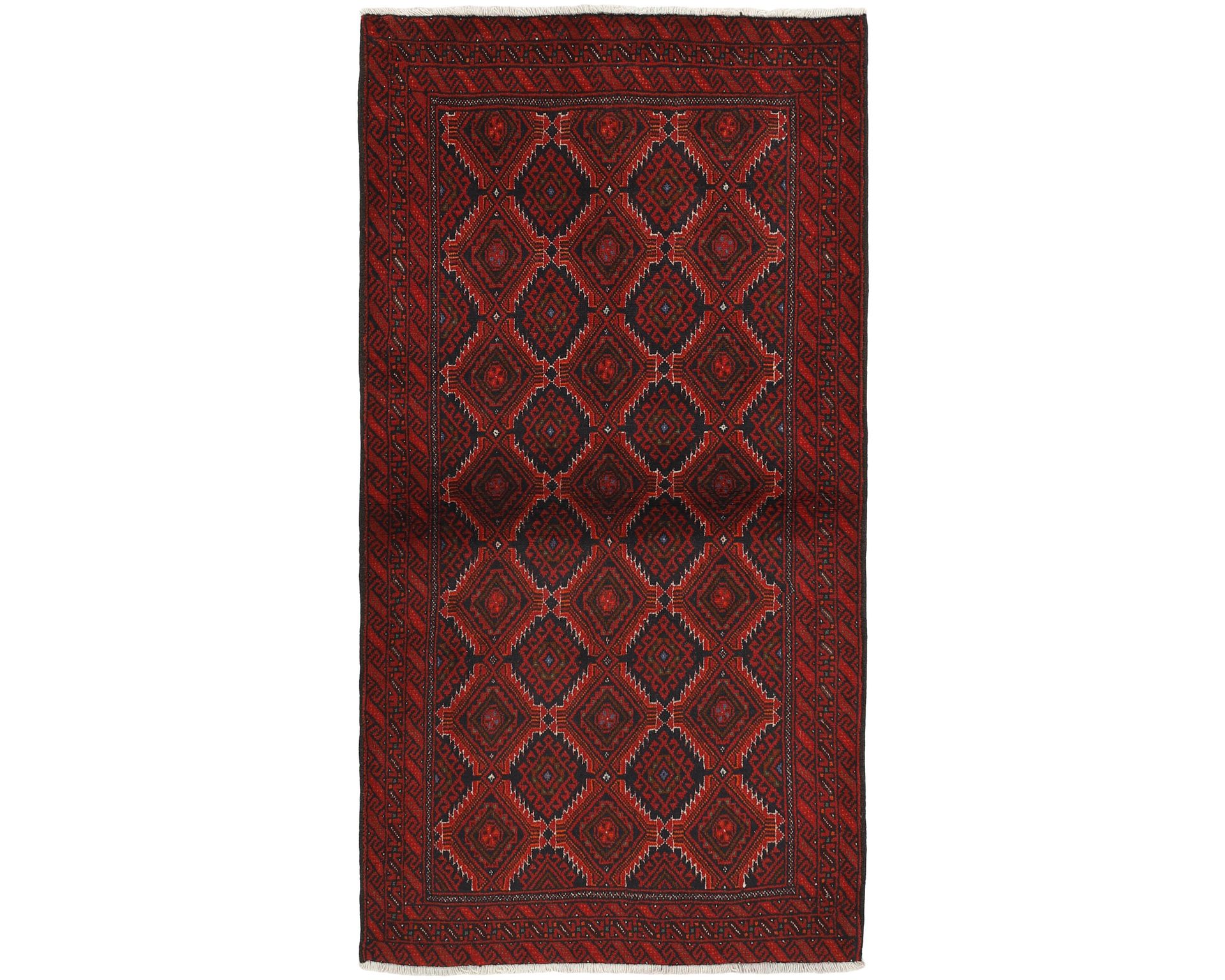 Balutch-matot tunnistaa kaarimaisista kuvioista ja tiiviistä sommittelusta. Kuviot koostuvat usein yksinkertaisista geometrisista elementeistä tai ruutumaisista rakenteista, ja toisinaan niissä esiintyy myös lintuja tai ihmishahmoja. Värimaailmaa hallitsevat syvänpunaiset sävyt, tummansininen ja valkoinen. Matot ovat käsinsolmittuja 100 % villasta, ja niiden solmutiheys vaihtelee 50 000–150 000 solmun välillä neliömetrillä. Käyttämätön.