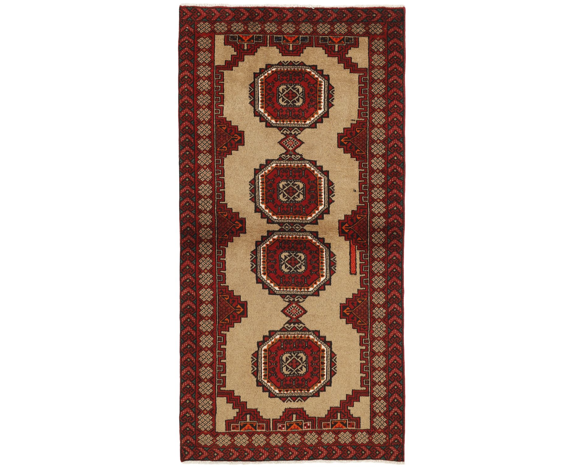 Balutch-matot tunnistaa kaarimaisista kuvioista ja tiiviistä sommittelusta. Kuviot koostuvat usein yksinkertaisista geometrisista elementeistä tai ruutumaisista rakenteista, ja toisinaan niissä esiintyy myös lintuja tai ihmishahmoja. Värimaailmaa hallitsevat syvänpunaiset sävyt, tummansininen ja valkoinen. Matot ovat käsinsolmittuja 100 % villasta, ja niiden solmutiheys vaihtelee 50 000–150 000 solmun välillä neliömetrillä. Käyttämätön.