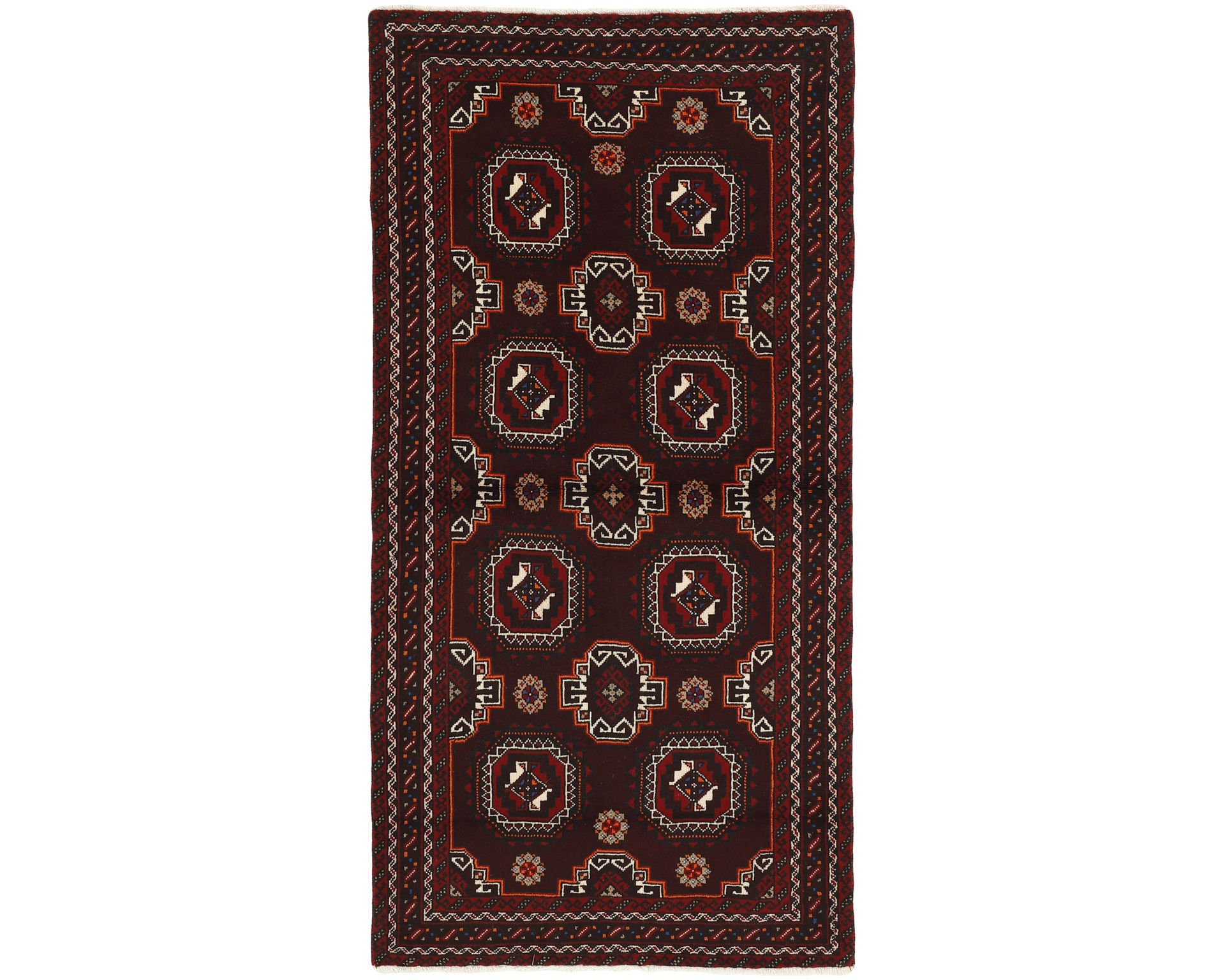 Balutch-matot tunnistaa kaarimaisista kuvioista ja tiiviistä sommittelusta. Kuviot koostuvat usein yksinkertaisista geometrisista elementeistä tai ruutumaisista rakenteista, ja toisinaan niissä esiintyy myös lintuja tai ihmishahmoja. Värimaailmaa hallitsevat syvänpunaiset sävyt, tummansininen ja valkoinen. Matot ovat käsinsolmittuja 100 % villasta, ja niiden solmutiheys vaihtelee 50 000–150 000 solmun välillä neliömetrillä. Käyttämätön.