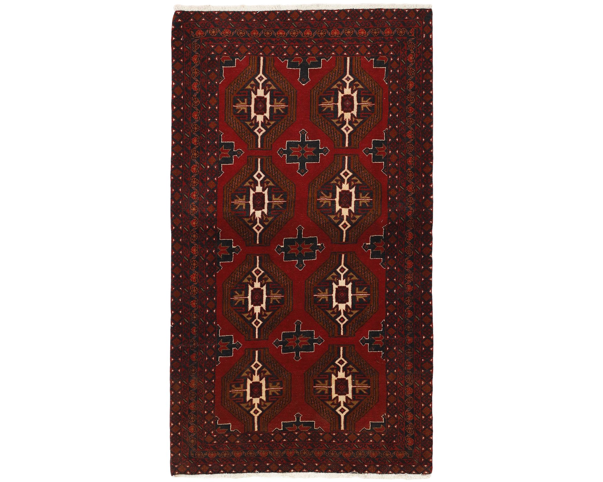 Balutch-matot tunnistaa kaarimaisista kuvioista ja tiiviistä sommittelusta. Kuviot koostuvat usein yksinkertaisista geometrisista elementeistä tai ruutumaisista rakenteista, ja toisinaan niissä esiintyy myös lintuja tai ihmishahmoja. Värimaailmaa hallitsevat syvänpunaiset sävyt, tummansininen ja valkoinen. Matot ovat käsinsolmittuja 100 % villasta, ja niiden solmutiheys vaihtelee 50 000–150 000 solmun välillä neliömetrillä. Käyttämätön.