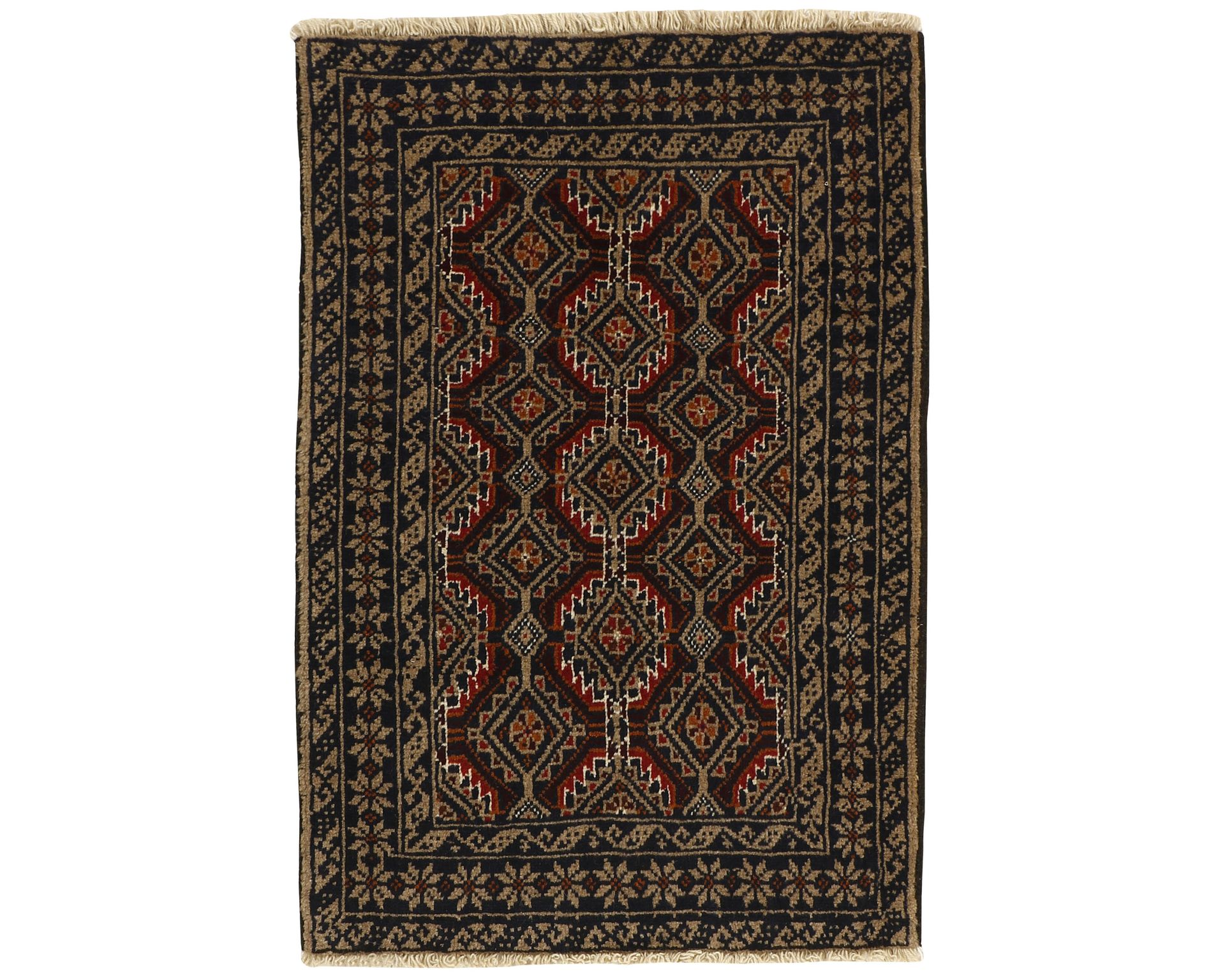 Balutch-matot tunnistaa kaarimaisista kuvioista ja tiiviistä sommittelusta. Kuviot koostuvat usein yksinkertaisista geometrisista elementeistä tai ruutumaisista rakenteista, ja toisinaan niissä esiintyy myös lintuja tai ihmishahmoja. Värimaailmaa hallitsevat syvänpunaiset sävyt, tummansininen ja valkoinen. Matot ovat käsinsolmittuja 100 % villasta, ja niiden solmutiheys vaihtelee 50 000–150 000 solmun välillä neliömetrillä. Käyttämätön.