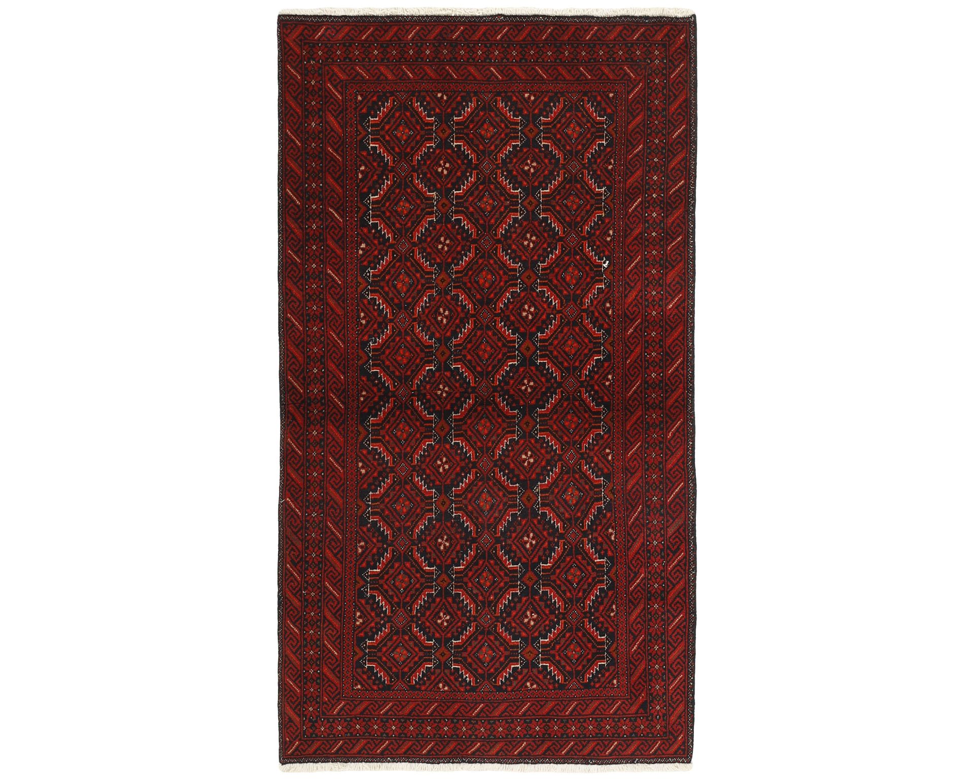 Balutch-matot tunnistaa kaarimaisista kuvioista ja tiiviistä sommittelusta. Kuviot koostuvat usein yksinkertaisista geometrisista elementeistä tai ruutumaisista rakenteista, ja toisinaan niissä esiintyy myös lintuja tai ihmishahmoja. Värimaailmaa hallitsevat syvänpunaiset sävyt, tummansininen ja valkoinen. Matot ovat käsinsolmittuja 100 % villasta, ja niiden solmutiheys vaihtelee 50 000–150 000 solmun välillä neliömetrillä. Käyttämätön.