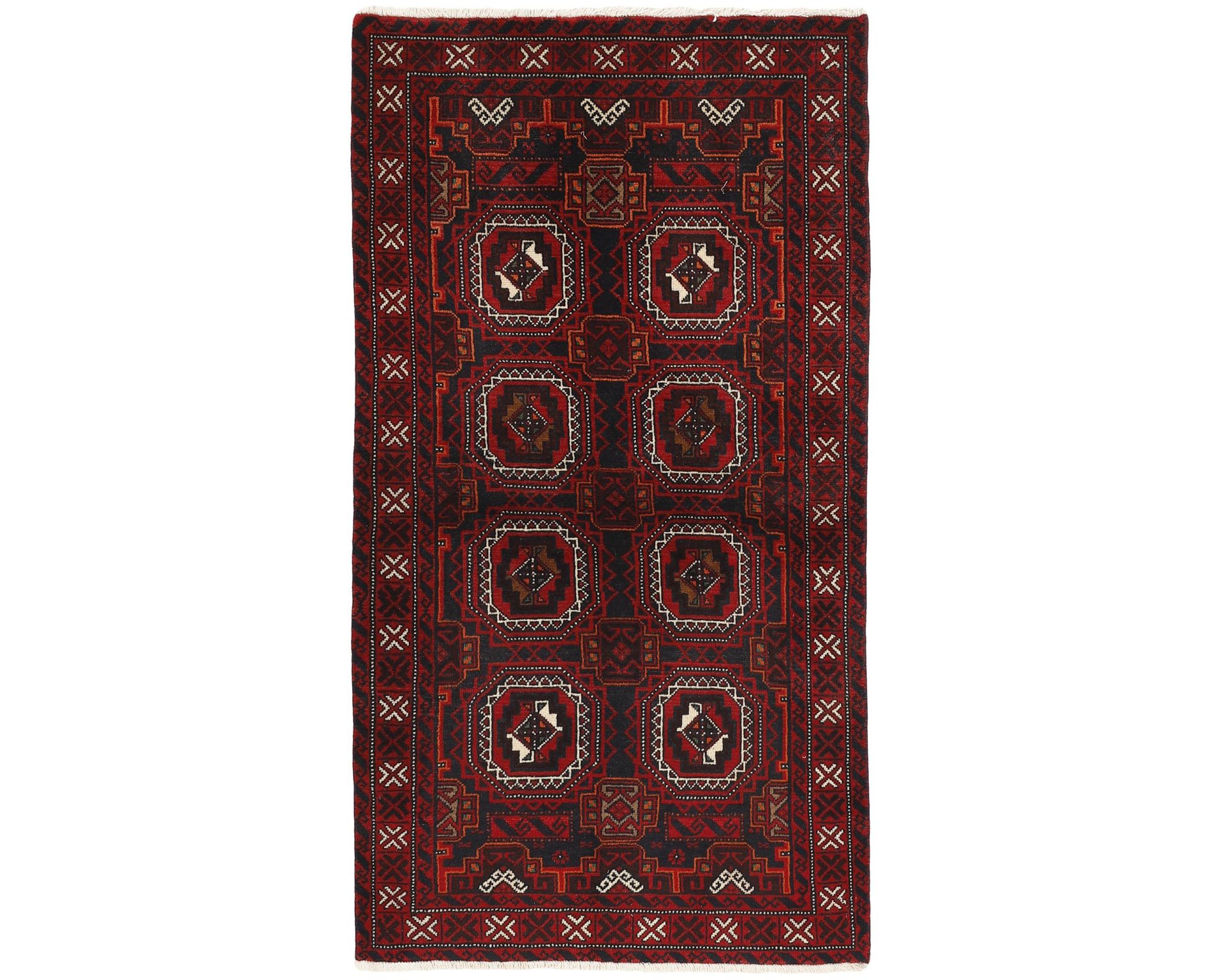 Balutch-matot tunnistaa kaarimaisista kuvioista ja tiiviistä sommittelusta. Kuviot koostuvat usein yksinkertaisista geometrisista elementeistä tai ruutumaisista rakenteista, ja toisinaan niissä esiintyy myös lintuja tai ihmishahmoja. Värimaailmaa hallitsevat syvänpunaiset sävyt, tummansininen ja valkoinen. Matot ovat käsinsolmittuja 100 % villasta, ja niiden solmutiheys vaihtelee 50 000–150 000 solmun välillä neliömetrillä. Käyttämätön.