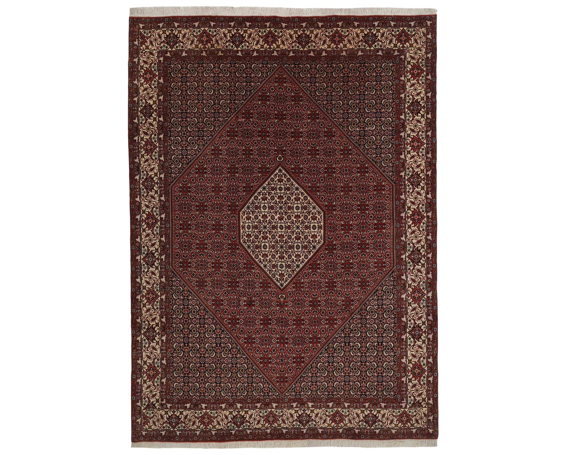 Bidjar Zandjan -matot tunnetaan poikkeuksellisen tiiviistä ja painavasta rakenteestaan. Ne ovat käsinsolmittuja villasta, ja niille ovat ominaisia punaisen eri sävyt, joita keventävät vaaleammat yksityiskohdat. Kuviointi perustuu pääasiassa perinteiseen Herati-kuvioon. Mattojen solmutiheys on 250 000–350 000 solmua neliömetrillä, ja ne suositellaan rullaamaan siten, että nukkapinta jää ulospäin, jotta solmut eivät vaurioidu. Käyttämätön.