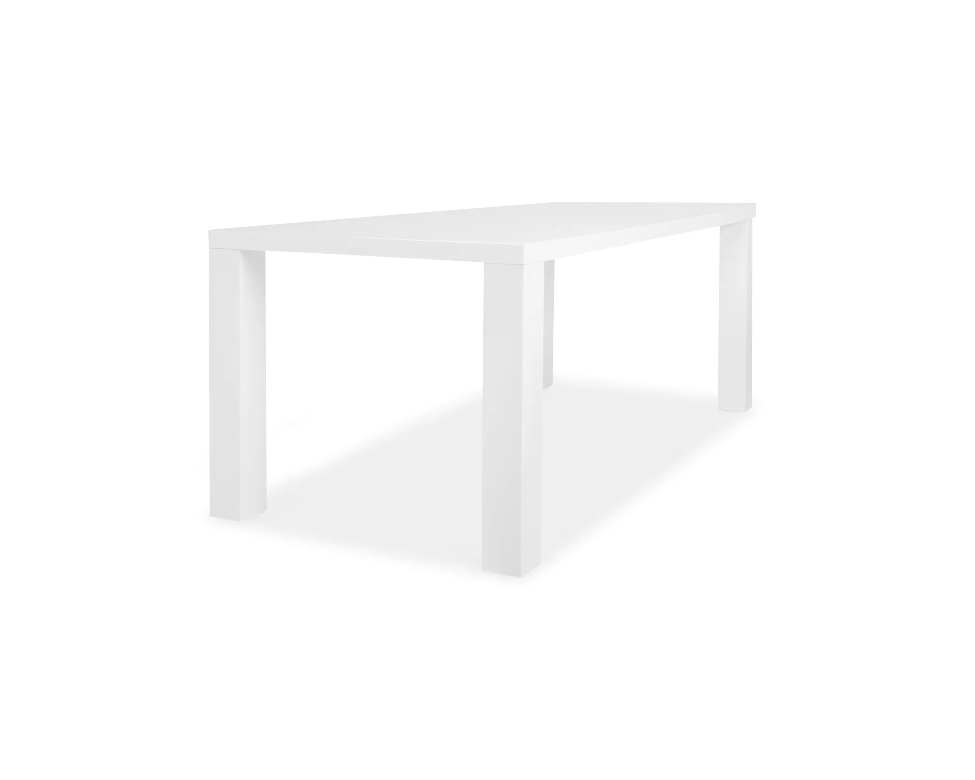 Ajaton ja minimalistinen ruokapöytä valkoisena. Valmistettu MDF:stä. Pohjassa pieniä naarmuja / kolhuja. Yleisvaikutelma erittäin hyvä.