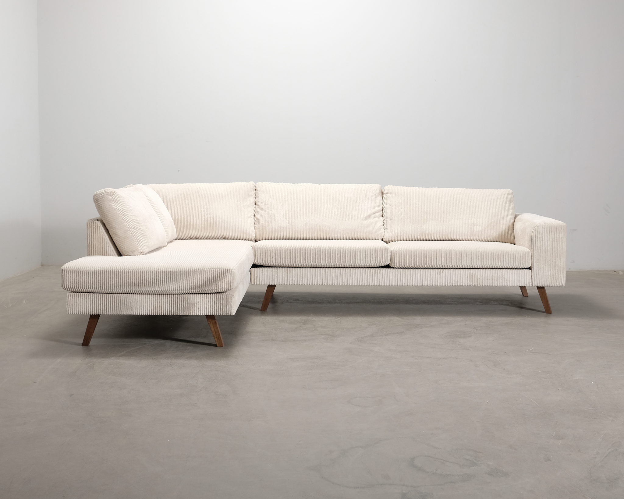 Copenhagen on 4-istuttava kulmasohva, jossa on moderni muotokieli ja beige vakosamettiverhoilu. Kulman selkänoja on murtunut sisäpuolelta, mutta vika ei vaikuta käyttöön. Yhden selkänojan kulma on murtunut ja siinä on reikä. Tukilistoja ei ole kiinnitetty.