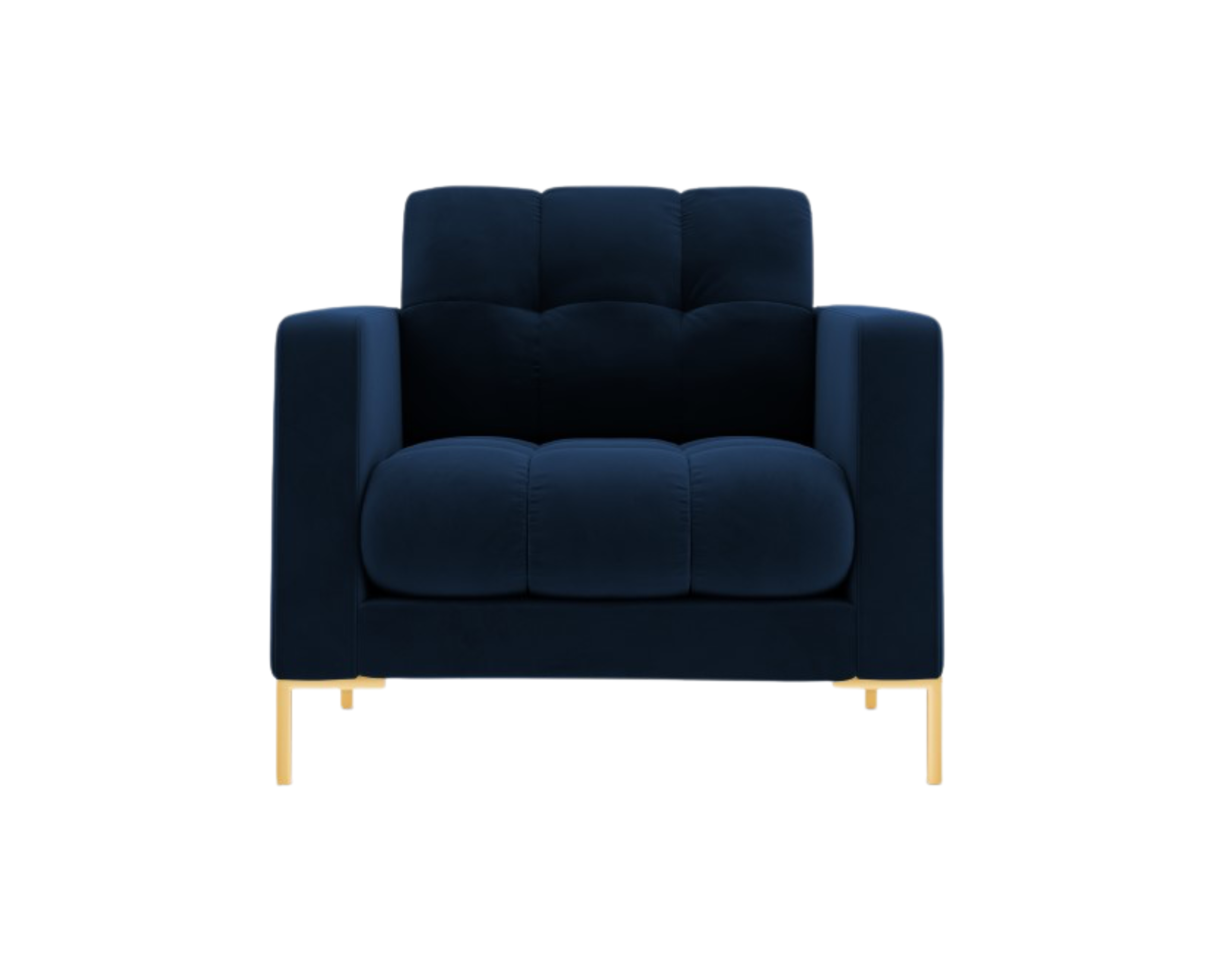 Cosmopolitan Designin valmistama Bali-nojatuoli yhdistää klassisia elementtejä moderniin muotoiluun luoden tyylikkään kokonaisuuden, joka asettuu vaivattomasti yhteen erilaisten sisustustyylien kanssa. Tummansininen samettiverhoilu, kullanväriset metallijalat ja koristetikkaukset viimeistelevät nojatuolin elegantin ilmeen. Alkuperäispakkaus puuttuu, mutta tuote on käyttämätön.