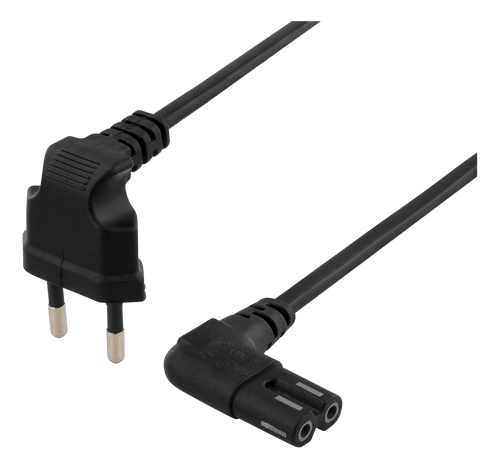 5 m pituus mahdollistaa joustavan sijoittelun työpöydille, AV-kokoonpanoihin ja työasemiin Kulmikas CEE7/16-pistoke vähentää rasitusta, pitää pistorasiaan kytkennän varmana Kulmikas C7-liitin helpottaa kytkentöjä huonekalujen ja räkkien takana Musta mantel pysyy huomaamattomana toimisto- ja kotiympäristöissä Kaksinapainen rakenne, ei sovellu laitteille jotka vaativat maadoitetun pistotulpan
