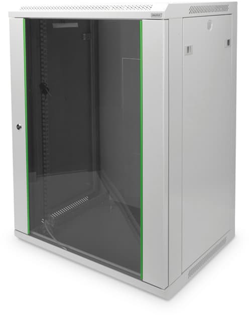 Tukeva 19-tuumainen ritiläkaappi lasiovella seinäasennukseen