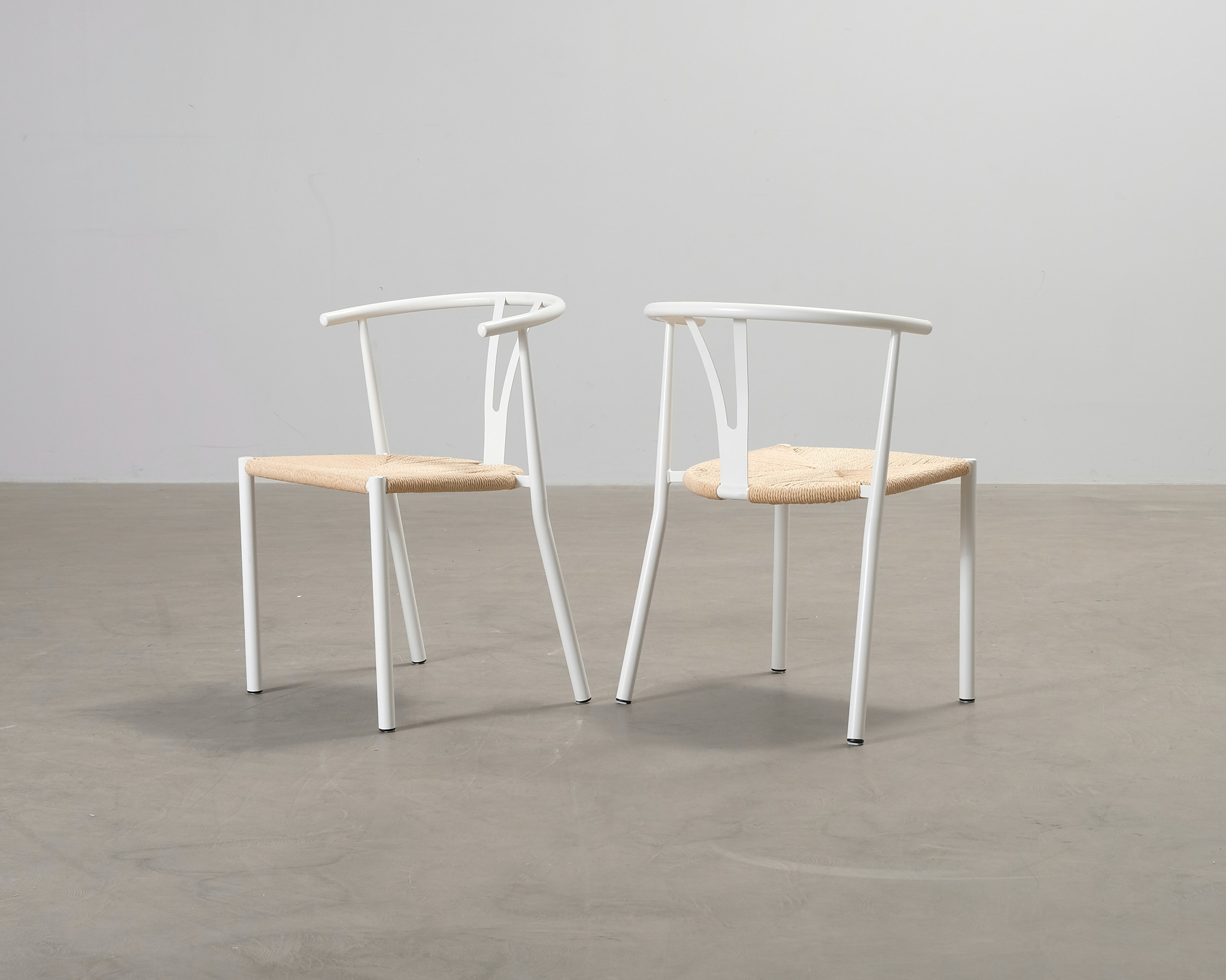 Trendikäs Elysia-tuoli. Tuoli on ilmeeltään pelkistetty, mutta istuimen narupunos antaa tuolille persoonallisen lisäyksen. Myydään 2 kpl settinä. Normaalia kulumista. Yleisvaikutelma hyvä.