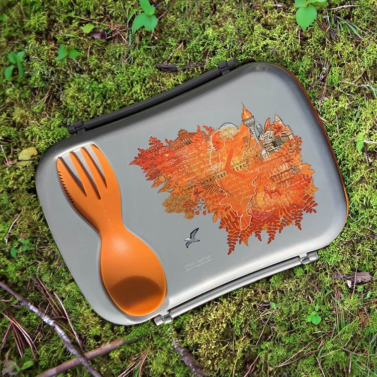 Pitää ruoan kylmänä jopa 5 tuntiaValmistettu RuotsissaSisärasia kastikkeelle tai salaatilleKylmäkallella varustettu Carl Oscar -eväsrasia pitää ruoan kylmänä ja tuoreena pitkään. Kätevän kanteen kiinnitettävän kylmäkallen avulla eväsrasia pitää ruoan kylmänä jopa 5 tuntia huoneenlämmössä. Lisäksi eväsrasiassa on aterimet ja pienempi sisärasia lisätarvikkeille. Eväsrasia sopii erinomaisesti kouluun, töihin tai mukaan matkalle.Eväsrasia kylmäkallellaTässä vuototiiviissä eväsrasiassa on irrotettava kylmäkalle ja innovatiiviset aterimet, jotka ovat kiinnitettävissä eväsrasian kanteen. Mukana on myös pienempi kannellinen sisärasia, joka sopii täydellisesti vihanneksille, hedelmille tai kastikkeelle.Kestävää materiaaliCarl Oscar -eväsrasia on valmistettu PP- ja tritaanimuovista, ja rasiassa on silikonitiivisteet. Eväsrasia on BPA-vapaa ja lyijytön. Kylmäkalle sisältää myrkytöntä jäähdytysgeeliä, joka takaa, että ruoka pysyy kylmänä ja on myös turvallista nauttia. Eväsrasia ja sisärasia ovat mikroaaltouunin kestäviä ja ne voidaan pestä koneen yläosassa, eli puhdistus on helppoa ja tehokasta. Huomaathan, että kylmäkalle ei ole mikroaaltouunin kestävä, mutta se on astianpesukoneessa pestävä.Kantta koristavat riimukirjaimetEväsrasian ainutlaatuinen muotoilu on saanut inspiraationsa norjalaisesta riimukirjoituksesta – jokaista kantta koristaa riimukirjainten merkityksen innoittama kuva. Tekniset tiedotMateriaali: PP- ja tritaanimuovi, silikoni ja myrkytön jäähdytysgeeliPaino: 335 gPituus: 17 cmLeveys: 12,5 cmKorkeus: 8 cmTilavuus: 0,9 l (sisärasia 0,2 l)Määrä per pakkaus: 1Valmistusmaa: Ruotsi