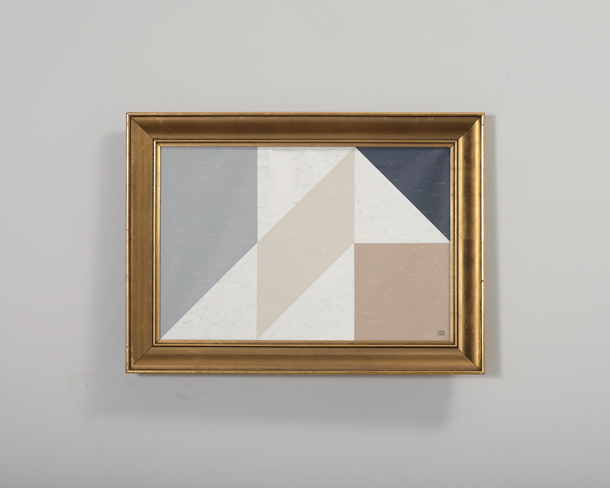 FIFU1962 on kuratoitu kokoelma abstrakteja taideteoksia, joiden taustalla on New Yorkista ja Helsingistä käsin toimiva taiteilija Fiona Spear. Spear hyödyntää töissään vanhoja teoksia, joiden päälle hän luo uusia kompositioita antaen näille uuden elämän. Vanhat kehykset luovat modernismia huokuvan abstraktin ilmaisun rinnalle kauniin kontrastin muodostaen teoksista mielenkiintoisia ja harmonisia kokonaisuuksia. Ilmaisuvoimaiset ja geometriset kompositiot antavat sisustukseen persoonallista tuntumaa ja teosten neutraalit sävyt asettuvat helposti sisustuksen erilaisten väripalettien ja materiaalien rinnalle. Teos on uusi. Luotu kierrätysmateriaaleista.