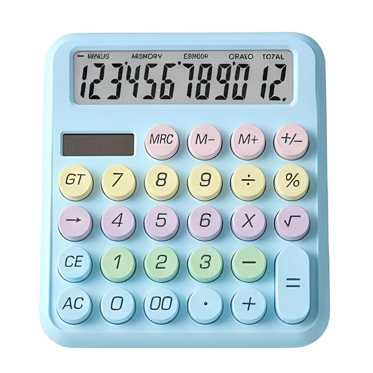 12-numeroinen elektroninen laskin alkuperäisessä macaron-mallissa. Ergonomiset pyöreät painikkeet, suuri näyttö ja keskeiset toiminnot: aritmeettinen laskutoiminto, prosenttilaskutoiminto, muistitoiminto, kokonaissumma. Toimii AAA-paristolla ja aurinkopaneelilla. Kompakti (14,5 × 15,5 cm) ja kevyt (190 g), sopii erinomaisesti huomaamattomaan päivittäiseen käyttöön koulussa tai toimistossa.