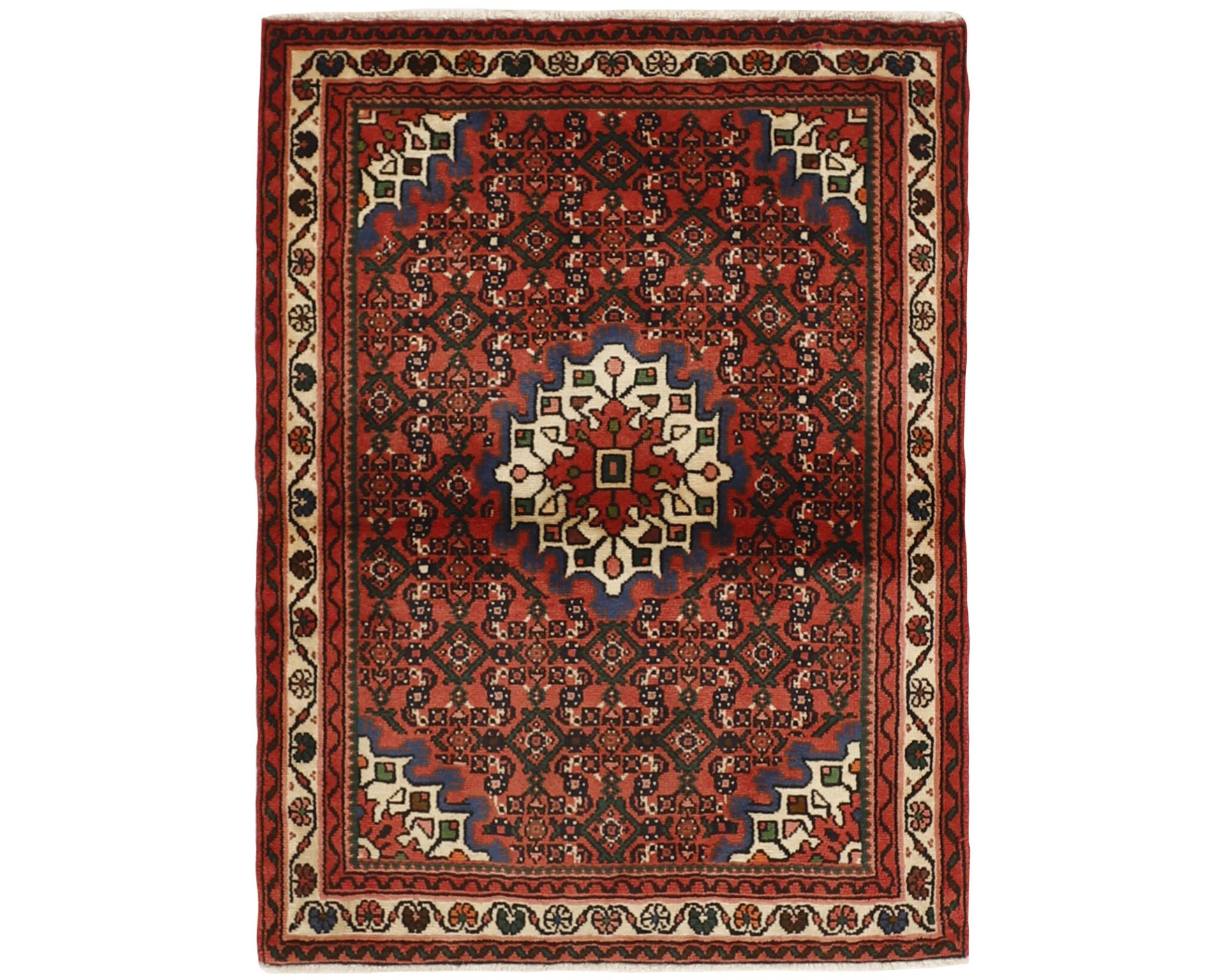 Hosseinabad-matot ovat käsinsolmittuja villamattoja, joiden tiivis rakenne tekee niistä erityisen soveltuvia arkiseen käyttöön. Kuviointi toistuu rytmikkäästi, mikä antaa matoille elävän ilmeen. Väripalettia hallitsevat voimakkaat ruskeat ja punaiset sävyt. Matot solmitaan ghiordes-tekniikalla, ja solmutiheys on 150 000–250 000 solmua neliömetrillä. Käyttämätön.