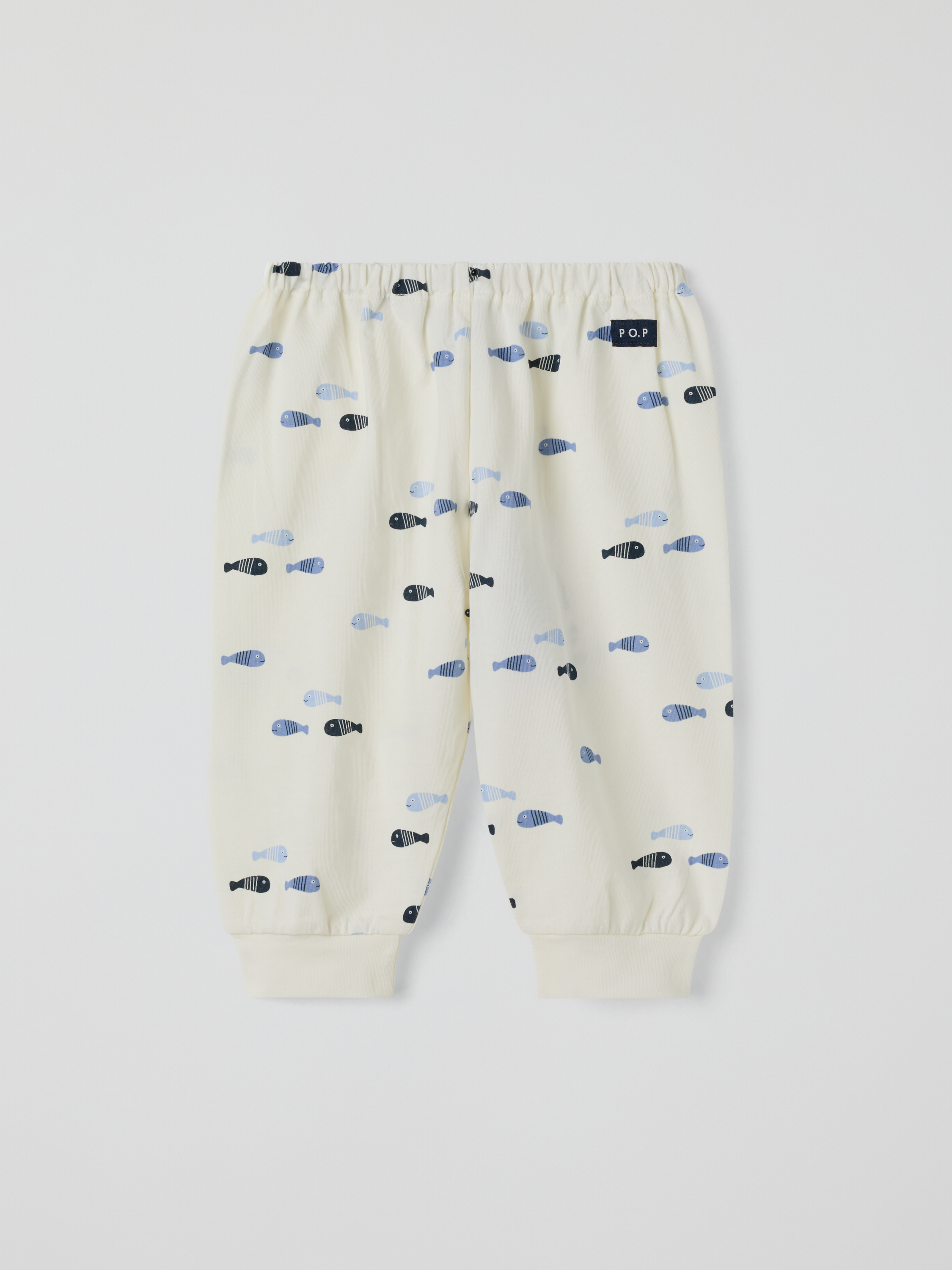 Pehmeät puuvillatrikoot housut vauvalle, kauttaaltaan kalakuosilla – todellinen kesän suosikki! Housuissa on kaksi suurta taskua, joustava vyötärö ja resorit lahkeensuissa mukavuuden takaamiseksi. Yhdistä yhteensopivaan bodyyn. Täydellinen sisarusmatchaukseen! fiskar<br/>Housut kalat