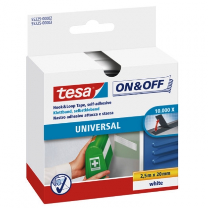 Vahva kiinnikeLeikkaa ja kiinnitäValitse 2 cm tai 5 cm leveysVahva tarranauha kaikkien kodin esineiden kiinnittämiseen. Helppo leikata haluttuun pituuteen ja ripustaa itseliimautuvan takaosan avulla. Käytännöllinen esineiden kiinnittämiseen, joiden on oltava käden ulottuvilla. Valitse valkoinen tarranauha kevyemmille esineille ja musta, erittäin vahva tarranauha raskaammille esineille.Toimi näinPuhdista pinta, johon tarranauha kiinnitetään. Leikkaa tarranauha haluttuun pituuteen ja liimaa tarrapuoli esineeseen ja pintaan, johon haluat kiinnittää esineen. Odota 24 tuntia, ennen kuin ripustat tai kiinnität mitään teippiin.Valkoinen 2 cm, universaaliOhuempi ja joustavampi tarranauha kevyempien esineiden turvallista kiinnittämistä varten. Voidaan avata ja sulkea 10 000 kertaa. Pituus 2,5 m ja leveys 2 cm.Musta 5 cm, erittäin vahvaErittäin vahva tarranauha, jolla kiinnität turvallisesti painavat esineet, kuten työkalut, toimistovälineet, keittiötarvikkeet tai kodinkoneet. Voidaan avata ja sulkea 1 000 kertaa. Pituus 1 m ja leveys 5 cm.Tekniset tiedotPituus, valkoinen: 2,5 mPituus, musta: 1 mLeveys, valkoinen: 2 cmLeveys, musta: 5 cm Tuotemerkki: TesaMäärä per pakkaus: 1Huomaathan, että kantavuus riippuu aina pinnan luonteesta.