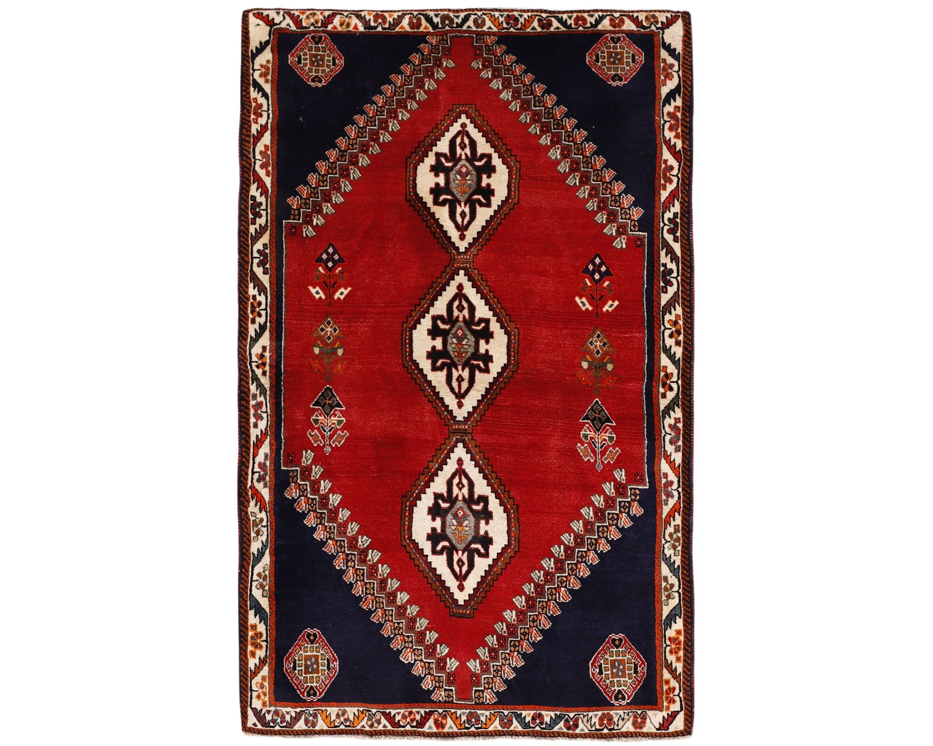 Kashghai-matot ovat käsinsolmittuja villamattoja, joille ovat ominaisia syvät värit, erityisesti punaiset sävyt, sekä tiivis rakenne. Matoissa on hyvin jäsennelty sommittelu, mikä rakentuu keskelle asetetun medaljongin ja koristeellisten reunojen ympärille. Perinteiset kuviot ovatkin avainasemassa maton runsaan ja yksityiskohtaisen ilmeen synnyssä. Solmutiheys vaihtelee 150 000–250 000 solmun välillä neliömetrillä. Käyttämätön.