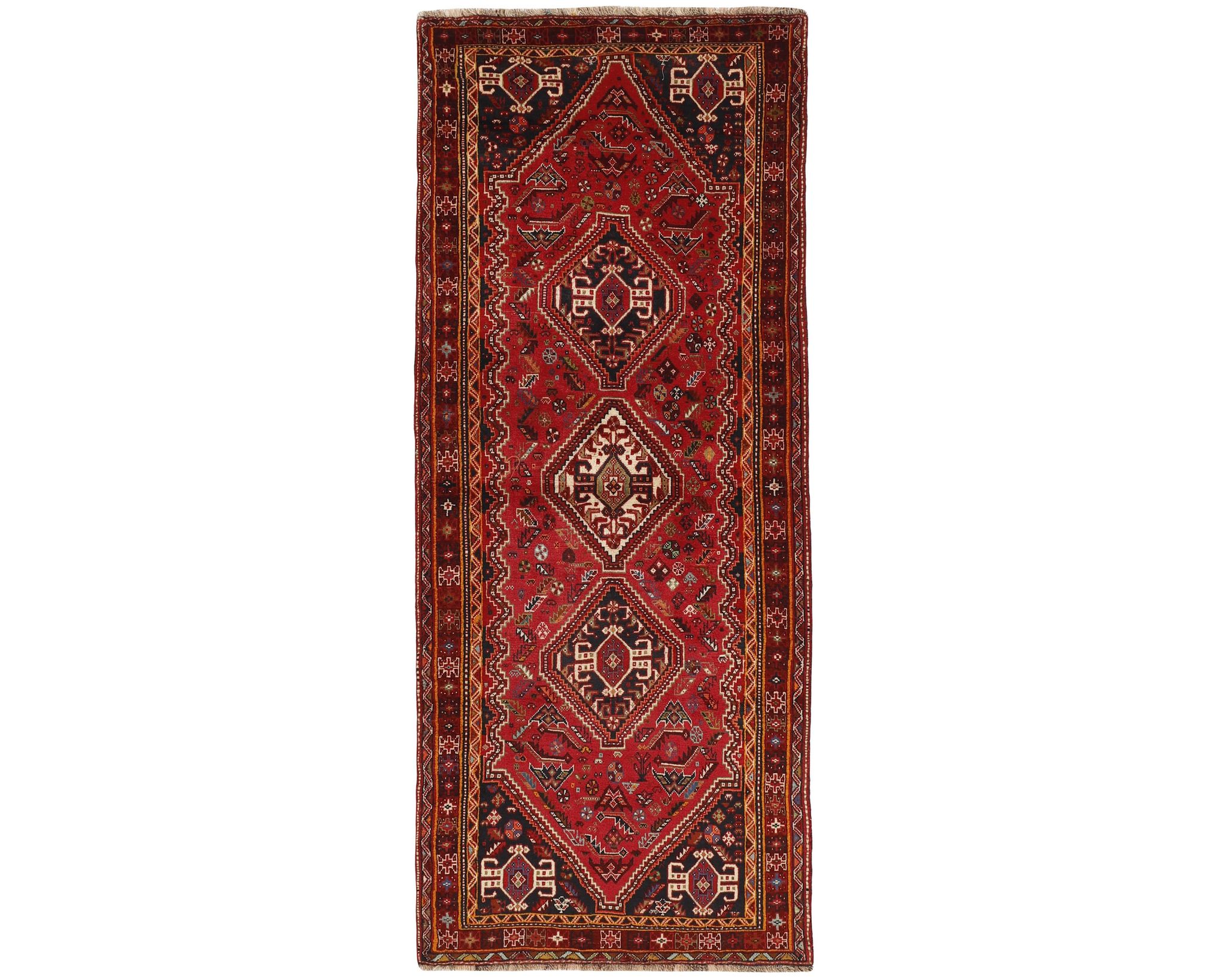 Kashghai-matot ovat käsinsolmittuja villamattoja, joille ovat ominaisia syvät värit, erityisesti punaiset sävyt, sekä tiivis rakenne. Matoissa on hyvin jäsennelty sommittelu, mikä rakentuu keskelle asetetun medaljongin ja koristeellisten reunojen ympärille. Perinteiset kuviot ovatkin avainasemassa maton runsaan ja yksityiskohtaisen ilmeen synnyssä. Solmutiheys vaihtelee 150 000–250 000 solmun välillä neliömetrillä. Käyttämätön.