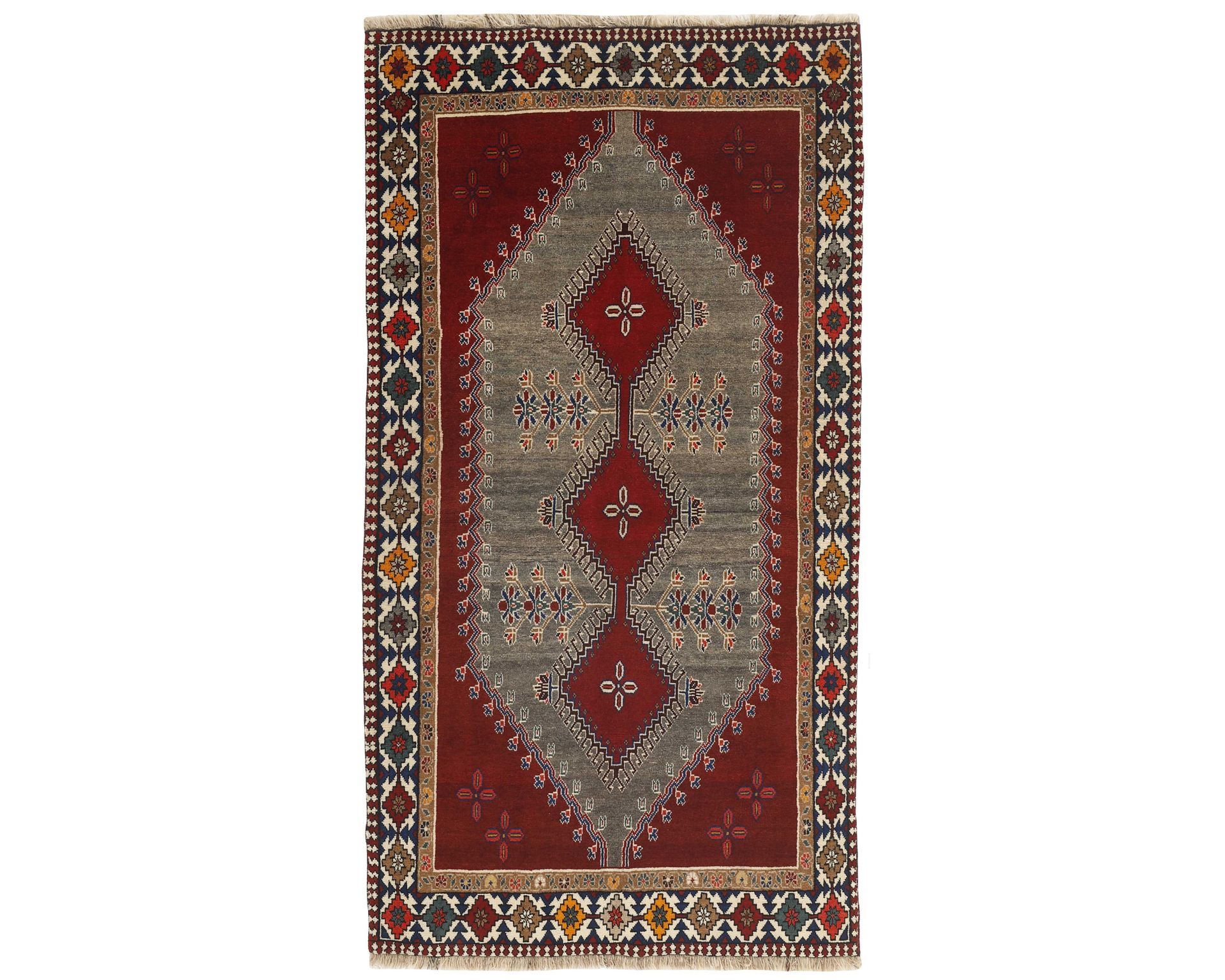 Kashghai-matot ovat käsinsolmittuja villamattoja, joille ovat ominaisia syvät värit, erityisesti punaiset sävyt, sekä tiivis rakenne. Matoissa on hyvin jäsennelty sommittelu, mikä rakentuu keskelle asetetun medaljongin ja koristeellisten reunojen ympärille. Perinteiset kuviot ovatkin avainasemassa maton runsaan ja yksityiskohtaisen ilmeen synnyssä. Solmutiheys vaihtelee 150 000–250 000 solmun välillä neliömetrillä. Käyttämätön.