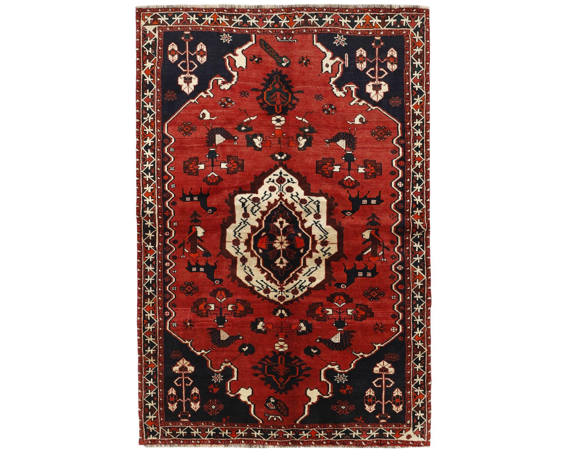 Kashghai-matot ovat käsinsolmittuja villamattoja, joille ovat ominaisia syvät värit, erityisesti punaiset sävyt, sekä tiivis rakenne. Matoissa on hyvin jäsennelty sommittelu, mikä rakentuu keskelle asetetun medaljongin ja koristeellisten reunojen ympärille. Perinteiset kuviot ovatkin avainasemassa maton runsaan ja yksityiskohtaisen ilmeen synnyssä. Solmutiheys vaihtelee 150 000–250 000 solmun välillä neliömetrillä. Käyttämätön.