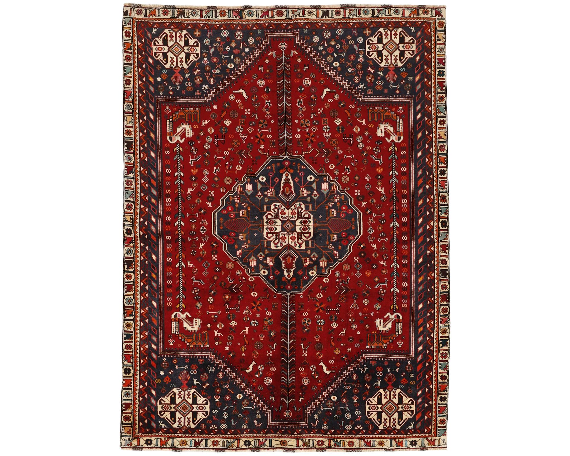 Kashghai-matot ovat käsinsolmittuja villamattoja, joille ovat ominaisia syvät värit, erityisesti punaiset sävyt, sekä tiivis rakenne. Matoissa on hyvin jäsennelty sommittelu, mikä rakentuu keskelle asetetun medaljongin ja koristeellisten reunojen ympärille. Perinteiset kuviot ovatkin avainasemassa maton runsaan ja yksityiskohtaisen ilmeen synnyssä. Solmutiheys vaihtelee 150 000–250 000 solmun välillä neliömetrillä. Käyttämätön.