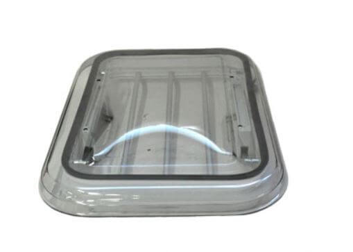 Kattoluukku Matkailuajoneuvoihin, taukotupavaunuihin sekä esimerkiksi hevoskuljetusvaunuihin soveltuva kattoluukku. Kestävässä kattoluukussa on alumiinirunko ja kehikko sekä kolme pitkittäissuuntaista tankoa. Savuakryylilasilla varustettu kattoluukku voidaan avata kaikilta sivuiltaan. - Asennusaukon koko: 35 x 50 cm - Paino: 2,7 kg