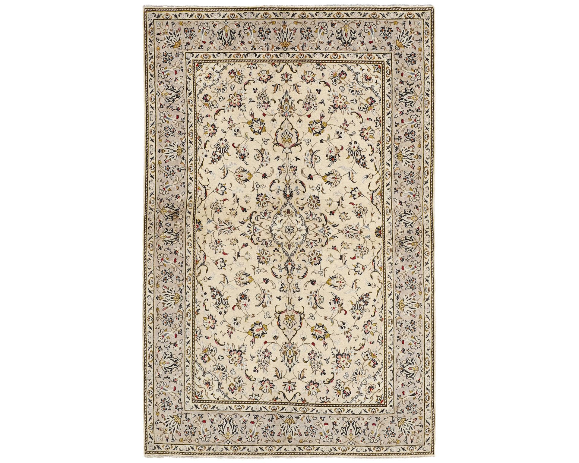 Keshan Fine -matot ovat käsinsolmittuja villamattoja, joille on ominaista erittäin korkea solmutiheys ja poikkeuksellinen yksityiskohtaisuus. Kuviointi rakentuu tyypillisesti keskelle sijoittuvan medaljongin ympärille, ja sama muoto toistuu usein myös maton kulmissa. Pintaa koristavat tiheät kukka- ja köynnöskuviot, jotka luovat mattoon vahvan syvyysvaikutelman. Solmutiheys on 350 000–450 000 solmua neliömetrillä. Käyttämätön.