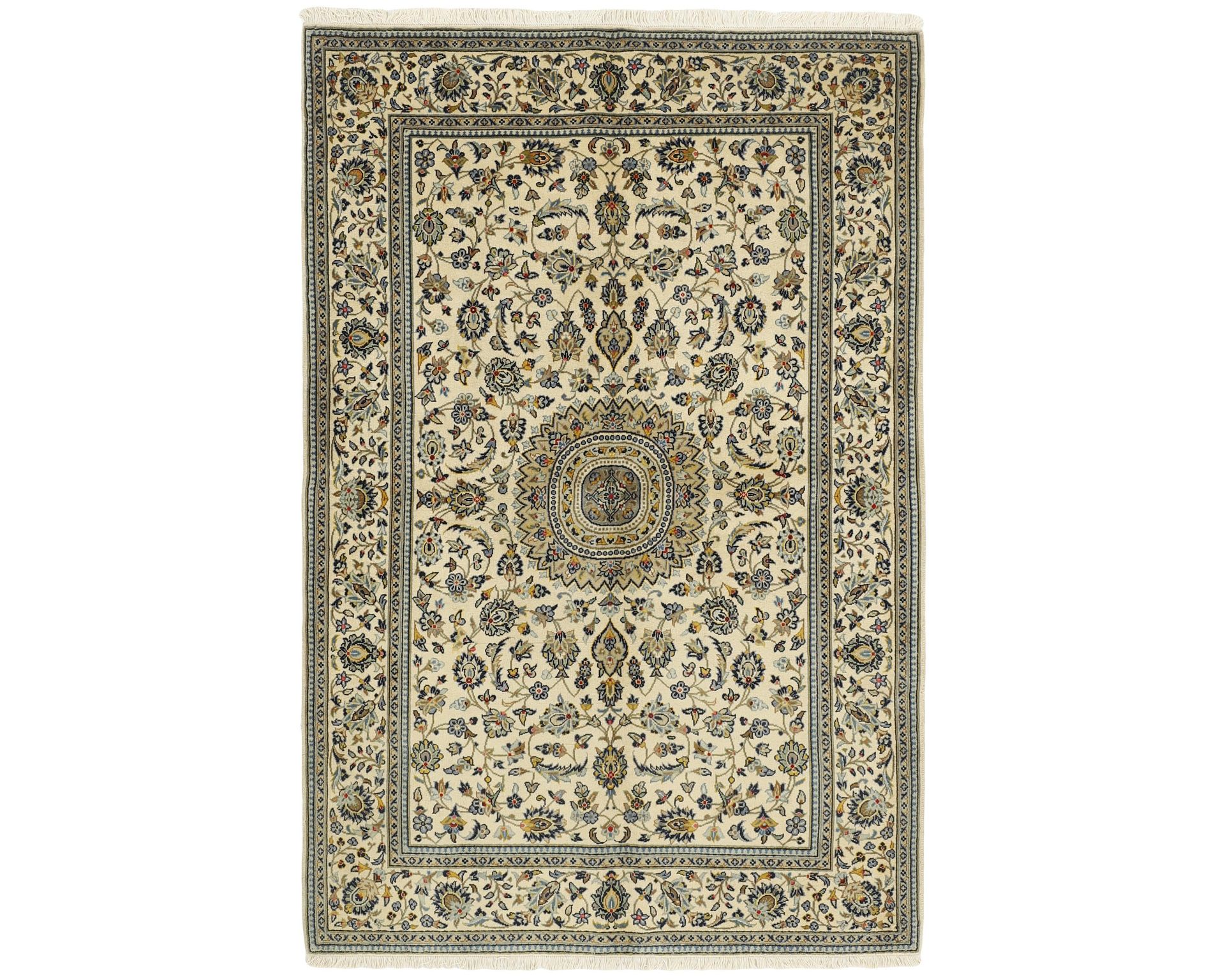 Keshan Fine -matot ovat käsinsolmittuja villamattoja, joille on ominaista erittäin korkea solmutiheys ja poikkeuksellinen yksityiskohtaisuus. Kuviointi rakentuu tyypillisesti keskelle sijoittuvan medaljongin ympärille, ja sama muoto toistuu usein myös maton kulmissa. Pintaa koristavat tiheät kukka- ja köynnöskuviot, jotka luovat mattoon vahvan syvyysvaikutelman. Solmutiheys on 350 000–450 000 solmua neliömetrillä. Käyttämätön.