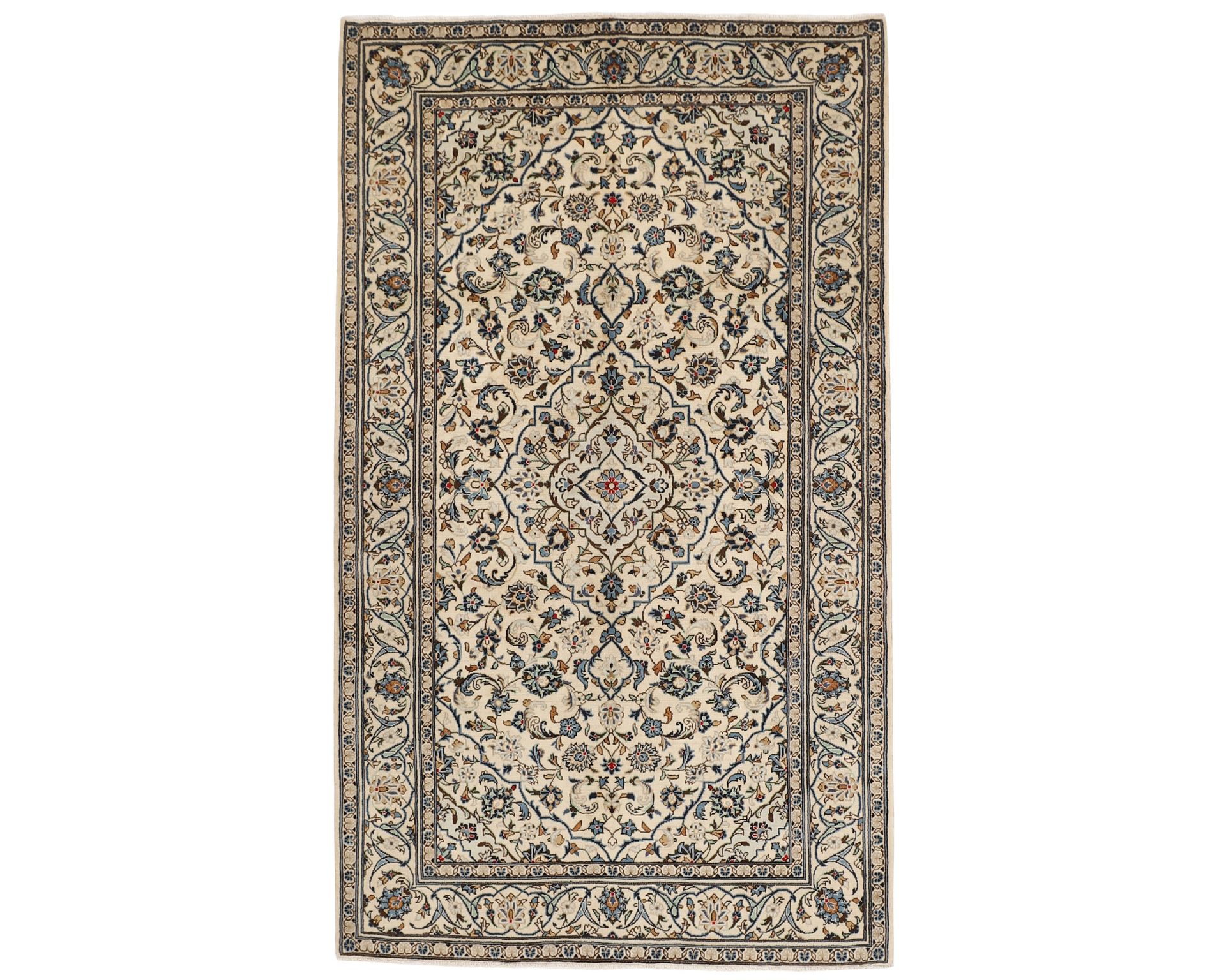 Keshan Fine -matot ovat käsinsolmittuja villamattoja, joille on ominaista erittäin korkea solmutiheys ja poikkeuksellinen yksityiskohtaisuus. Kuviointi rakentuu tyypillisesti keskelle sijoittuvan medaljongin ympärille, ja sama muoto toistuu usein myös maton kulmissa. Pintaa koristavat tiheät kukka- ja köynnöskuviot, jotka luovat mattoon vahvan syvyysvaikutelman. Solmutiheys on 350 000–450 000 solmua neliömetrillä. Käyttämätön.