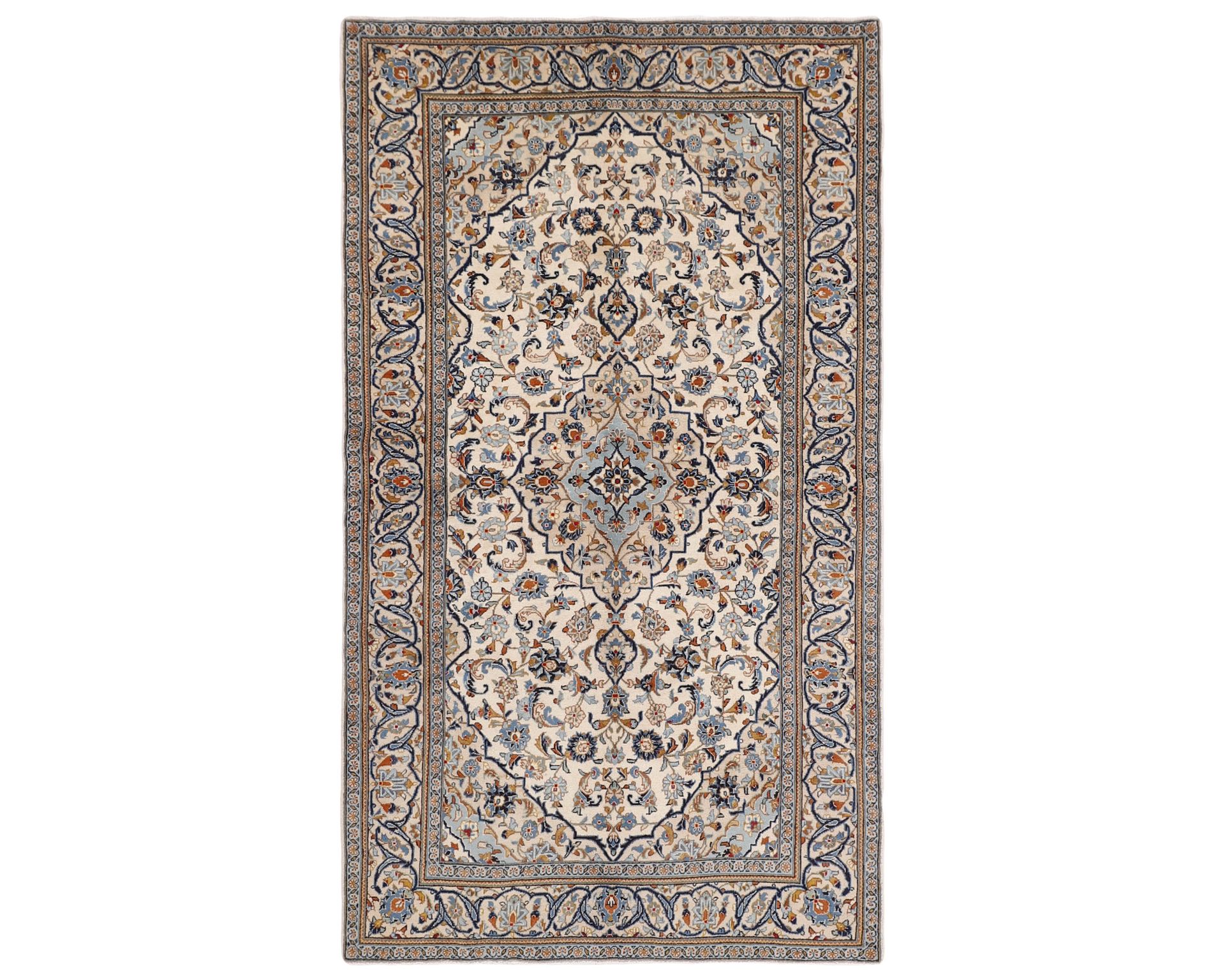 Keshan Fine -matot ovat käsinsolmittuja villamattoja, joille on ominaista erittäin korkea solmutiheys ja poikkeuksellinen yksityiskohtaisuus. Kuviointi rakentuu tyypillisesti keskelle sijoittuvan medaljongin ympärille, ja sama muoto toistuu usein myös maton kulmissa. Pintaa koristavat tiheät kukka- ja köynnöskuviot, jotka luovat mattoon vahvan syvyysvaikutelman. Solmutiheys on 350 000–450 000 solmua neliömetrillä. Käyttämätön.