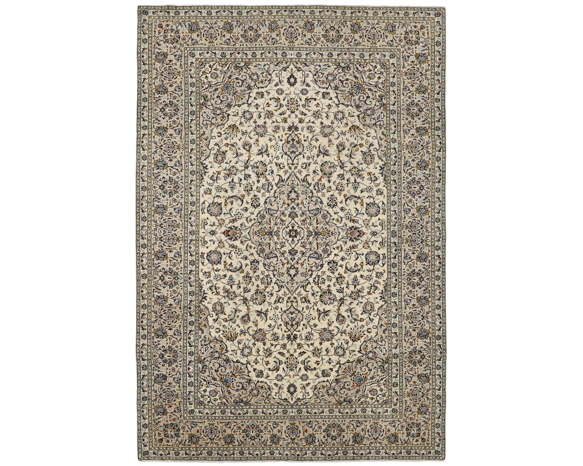 Keshan Fine -matot ovat käsinsolmittuja villamattoja, joille on ominaista erittäin korkea solmutiheys ja poikkeuksellinen yksityiskohtaisuus. Kuviointi rakentuu tyypillisesti keskelle sijoittuvan medaljongin ympärille, ja sama muoto toistuu usein myös maton kulmissa. Pintaa koristavat tiheät kukka- ja köynnöskuviot, jotka luovat mattoon vahvan syvyysvaikutelman. Solmutiheys on 350 000–450 000 solmua neliömetrillä. Käyttämätön.