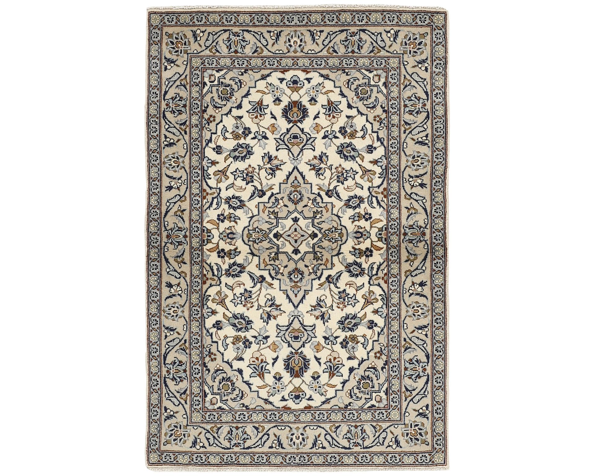 Keshan Fine -matot ovat käsinsolmittuja villamattoja, joille on ominaista erittäin korkea solmutiheys ja poikkeuksellinen yksityiskohtaisuus. Kuviointi rakentuu tyypillisesti keskelle sijoittuvan medaljongin ympärille, ja sama muoto toistuu usein myös maton kulmissa. Pintaa koristavat tiheät kukka- ja köynnöskuviot, jotka luovat mattoon vahvan syvyysvaikutelman. Solmutiheys on 350 000–450 000 solmua neliömetrillä. Käyttämätön.