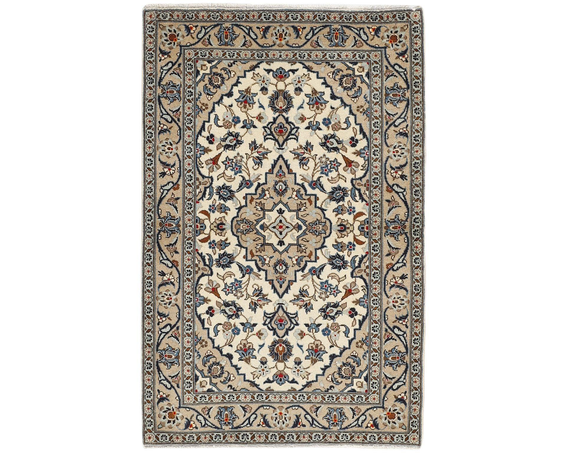 Keshan Fine -matot ovat käsinsolmittuja villamattoja, joille on ominaista erittäin korkea solmutiheys ja poikkeuksellinen yksityiskohtaisuus. Kuviointi rakentuu tyypillisesti keskelle sijoittuvan medaljongin ympärille, ja sama muoto toistuu usein myös maton kulmissa. Pintaa koristavat tiheät kukka- ja köynnöskuviot, jotka luovat mattoon vahvan syvyysvaikutelman. Solmutiheys on 350 000–450 000 solmua neliömetrillä. Käyttämätön.