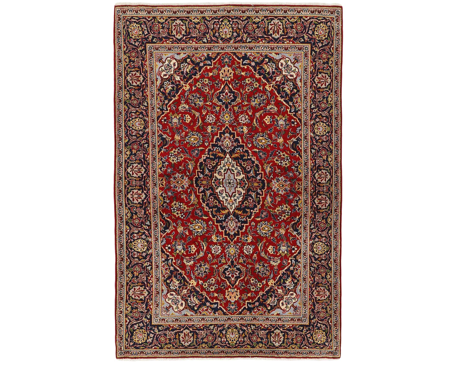 Keshan-matot ovat käsinsolmittuja villamattoja, joille on tunnusomaista hienostunut, koko pinnan peittävä jatkuva kuviointi. Sommittelu rakentuu useimmiten keskellä sijaitsevan medaljongin ympärille, jota täydentävät yksityiskohtaiset kukka- ja köynnökuviot. Reunoja koristavat usein Herati-kuviot ja pienet rosetit. Värimaailma rakentuu pääosin punaisesta ja sinisestä, joita pehmentävät vaaleammat sävyt. Solmutiheys vaihtelee 150 000–250 000 solmun välillä neliömetrillä. Käyttämätön.