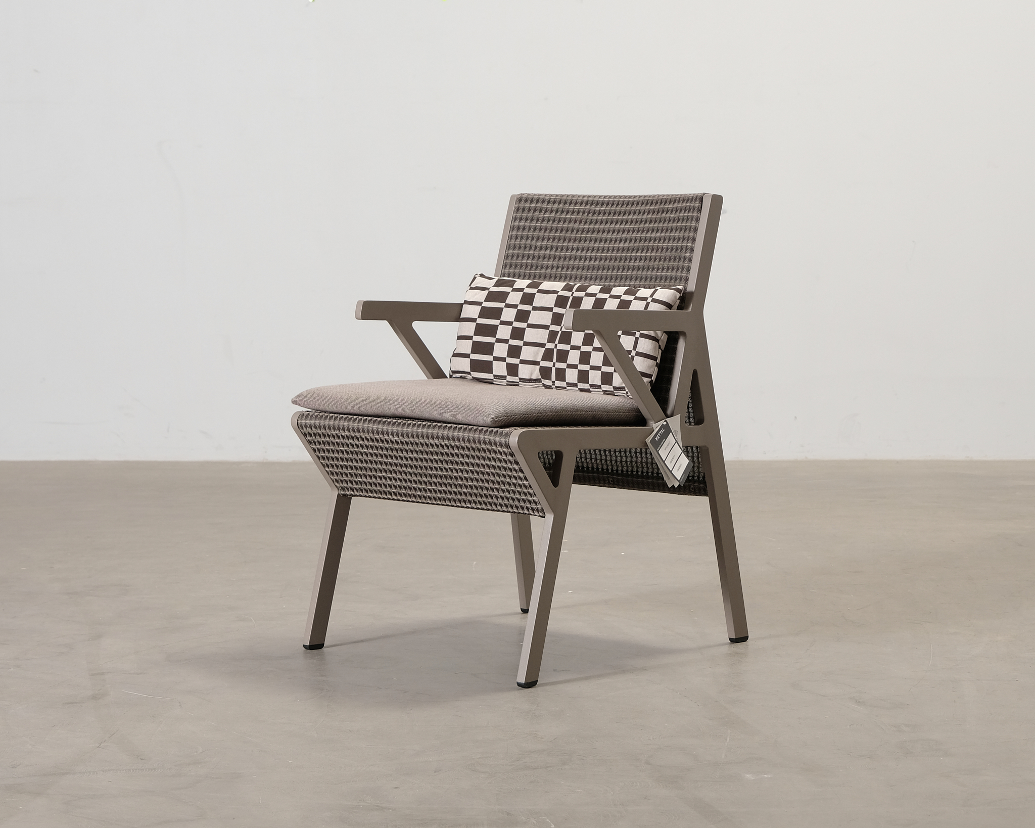 Kettalin Vieques-nojatuoli on osa Patricia Urquiolan suunnittelemaa ulkokalustesarjaa, jossa yhdistyvät kevyet rakenteet ja innovatiiviset materiaalit. Nojatuolissa on alumiinirunko sekä verhoilu, joka on suunniteltu kestämään ulkokäyttöä. Vieques-nojatuolin selkeä ja moderni muotoilu sopii monenlaisiin ulkotiloihin, aina terassista parvekkeelle ja pihapiiriin. Harmaa sävy tekee tuolista helposti yhdisteltävän erilaisiin kalusteisiin ja värimaailmoihin.