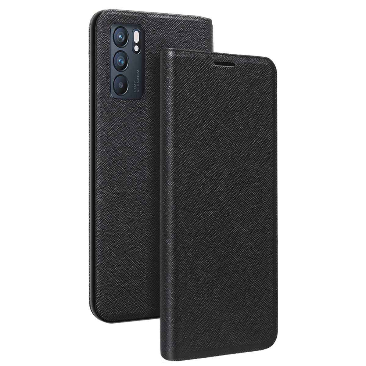 Tässä mustassa foliokotelossa on suojaava etulokasuoja, joka peittää Oppo A16, A16s tai A54s 4G -puhelimen näytön ja takaosan. Musta synteettinen päällyste, jossa on saffiano-vaikutteinen rakenne, tarjoaa hankauksen ja tahraantumisen kestävän pinnan. Taittuvaa läppää voidaan käyttää jalusta-asennossa sisällön katselua varten. Sisäiseen läppään on integroitu korttilokero.