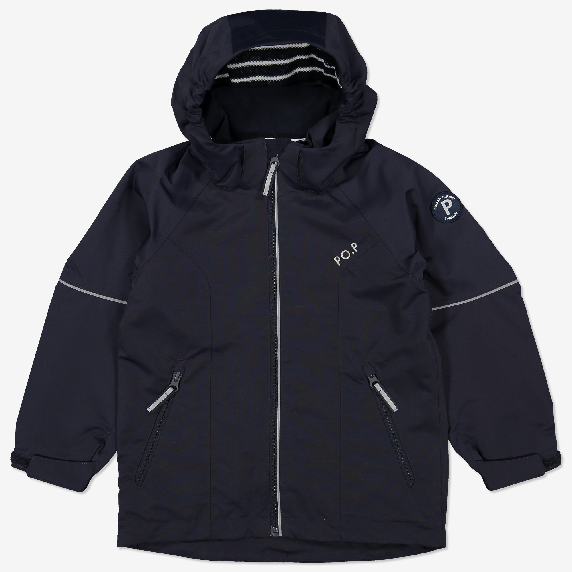 Tuulen- ja vedenpitävä kuoritakki, joka kestää hyvin kulutusta. Takki on kulutusta kestävää materiaalia, joka myös hengittää hyvin. Takissa on raidallinen verkkovuori ja irrotettava huppu, jossa on nepparikiinnitys. Säädettävässä hupussa on sivuilla kuminauhat. Takin hihansuita voi säätää tarranauhoilla, ja muotoillut hihat takaavat hyvän istuvuuden. Täysin teipatut saumat tekevät takista täysin vedenpitävän. Vetoketjun sisäpuolella on tuulisuoja, joka antaa lisäsuojaa kylmyyttä ja kosteutta vastaan. Tuulisuojan yläosassa on pehmeä fleecevuori. Kuoritakin ainutlaatuisen nepparilistan avulla se on kiinnitettävissä windfleeceemme. Kerros 3 – lämpimänä pitävä ja säältä suojaava ulkokerros • Tuulenpitävä • Vedenpitävä materiaali. Materiaalin vesipilariarvo on > 10 000 mm • Hyvä hengittävyys • Täysin teipatut saumat • YKK-vetoketju • Näkyvät 360 asteen 3M-heijastimet • Vetoketjullinen rintatasku • Ainutlaatuisen nepparilistan avulla takki on kiinnitettävissä windfleeceemme • Vetoketjussa leukasuoja • Vedenpitävyys saatu aikaan ilman PFC-yhdisteitä • Säädettävä ja irrotettava huppu • Muotoillut hihat • Säädettävät hihansuut • Kaksi sivutaskua • Verkkovuori, jossa on klassinen raitakuosimme<br/>Kuoritakki