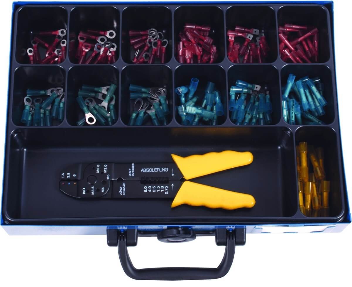 Kätevä Förch-johdonliitinlajitelma, jossa on 181 eristettyä liitintä yleisimpiin pienjännitehommiin. Kaikki pysyy järjestyksessä tukevassa metallirasiassa, joten oikea liitin löytyy nopeasti eikä työ keskeydy etsimiseen. Eristetyt liittimet tekevät liitoksista turvallisempia ja siistimpiä.