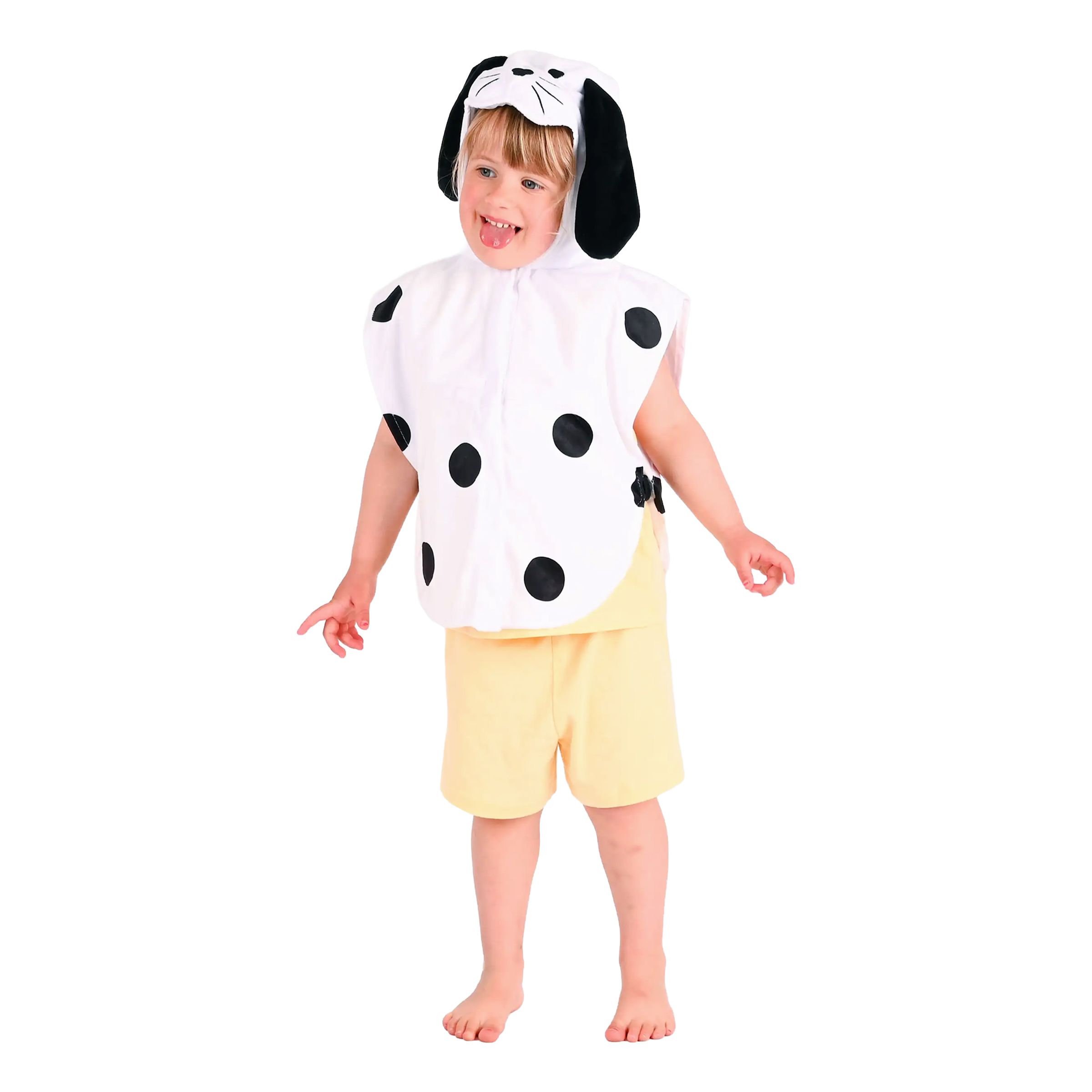Yhtäkkiä kuuluu pienten tassujen hiipivän lattialla – ja siinä se onkin, juhlien suloisin pikku hauva! Tämä dalmatialaisviitta sopii täydellisesti leikkiin, hassutteluun ja loputtomaan "Hau hau" -konserttiin. Täysi nappivalinta kaikille pienille koirafaneille!<br /><br />Hund Cape för Barn on pehmeä ja mukava valkoinen viitta, jossa on mustia pilkkuja sekä huppu suloisilla roikkuvilla korvilla ja hellyttävällä koirannaamalla. Selkäpuolella on myös pieni häntä, joka tuo asuun vielä lisää leikkisyyttä. Täydellinen valinta eläinnaamiaiset, juhlat tai hetkiin, jolloin lapsi haluaa pukeutua nelijalkaiseksi suosikikseen. Viitta puetaan helposti lapsen omien vaatteiden päälle.<br /><br /><ul><li>Materiaali: polyesteri</li><li>Sisältää hupullisen viitan</li><li>Mitat: 62 x 34 cm</li><li><strong>HUOM! Mikään muu kuvassa näkyvä ei sisälly pakkaukseen</strong></li><li>Koko: one size (lapsille n. 1–4 vuotta)</li></ul>
