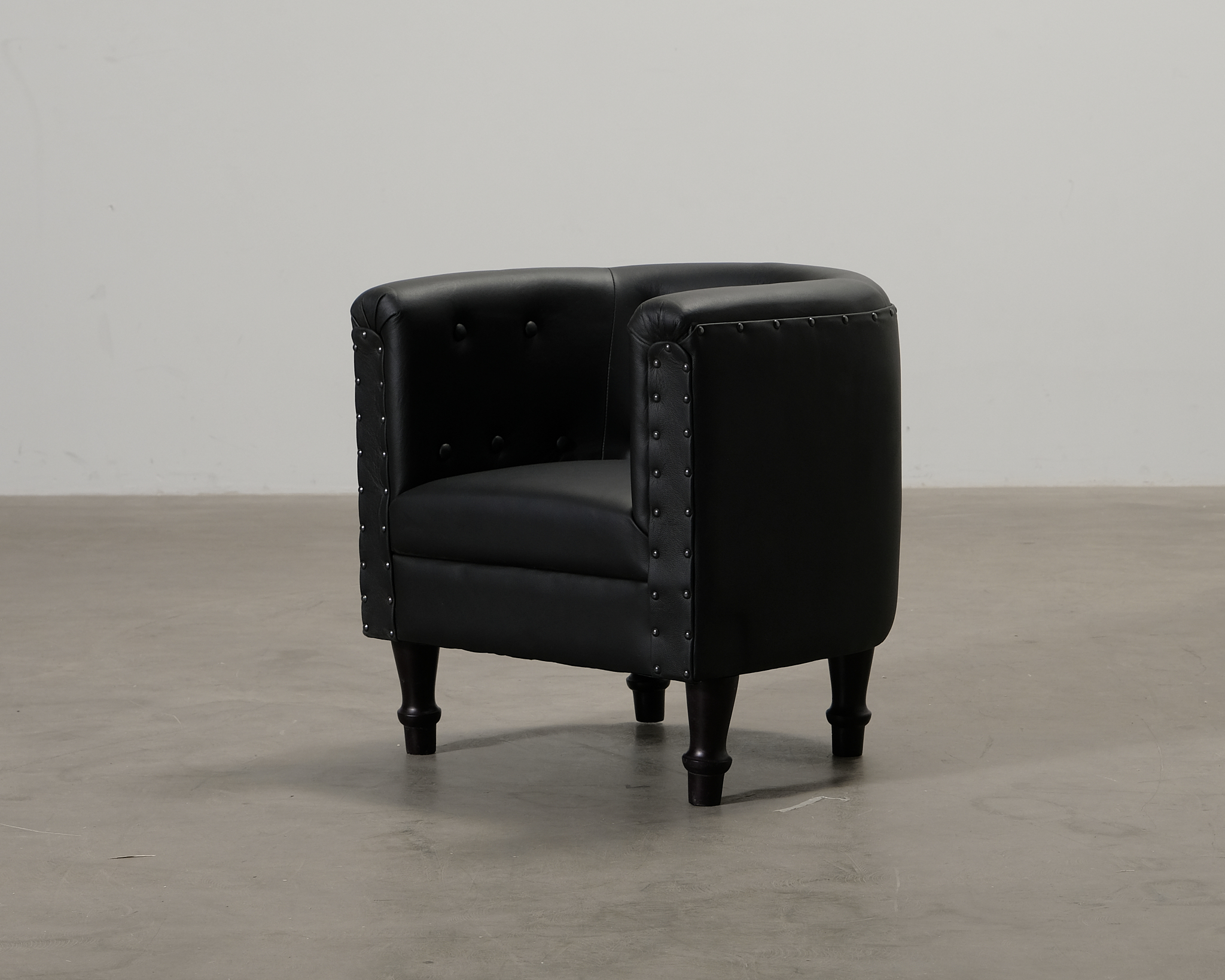 Tyylikäs nojatuoli, joka luo sisustukseen klassista vaikutelmaa. Musta nahkaverhoilu sekä kauniit yksityiskohdat viimeistelevät nojatuolin elegantin ilmeen. Pieniä käytön jälkiä. Yleisvaikutelma erittäin hyvä.