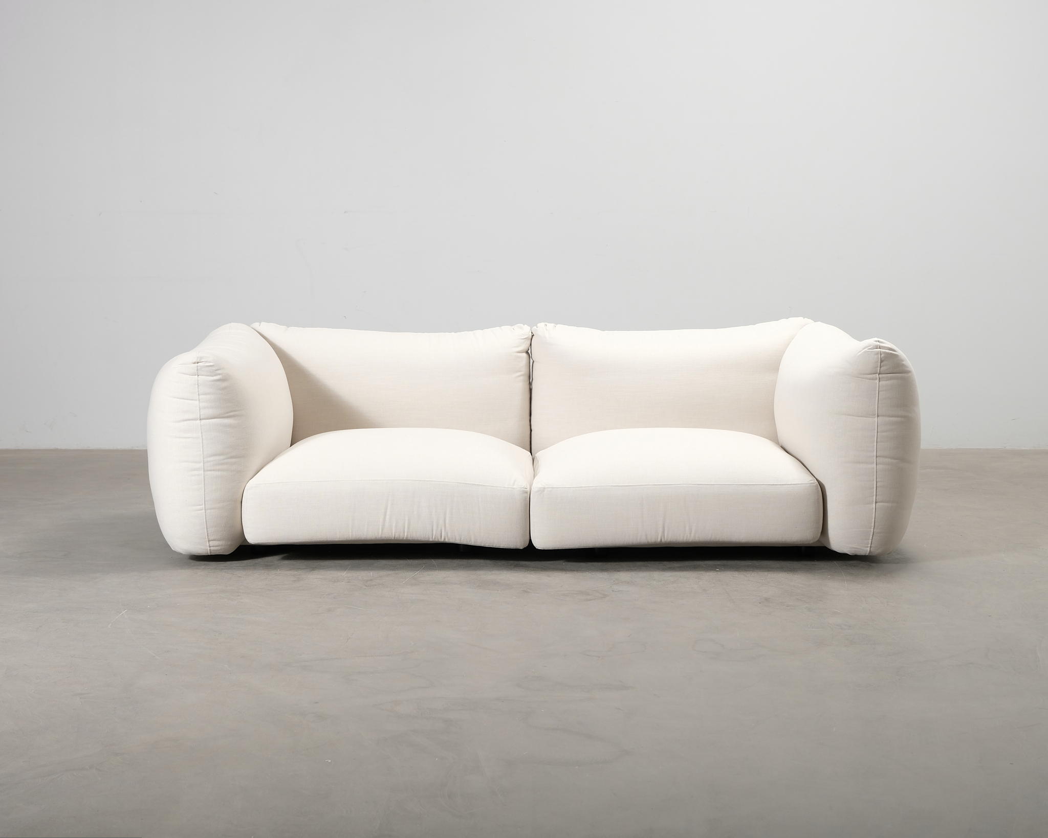 Layeredin arkiston aarteet saavat toisen mahdollisuuden Mjukilla. Lotta Agatonin Layeredille suunnittelema minimalistinen ja elegantti 2-istuttava sohva, jonka syvät ja pehmeät istuintyynyt tarjoavat erinomaista mukavuutta. Sohva on valmistettu käsityönä Bulgariassa mikä takaa laadukkaan viimeistelyn. Hienostunut ja veistoksellinen siluetti tekee sohvasta upean elementin moderniin sisustukseen ja kauniin luonnonvalkoinen sävy viimeistelee sen harmonisen ilmeen. Toisessa päädyssä tumma jälki. Yleisvaikutelma erinomainen.