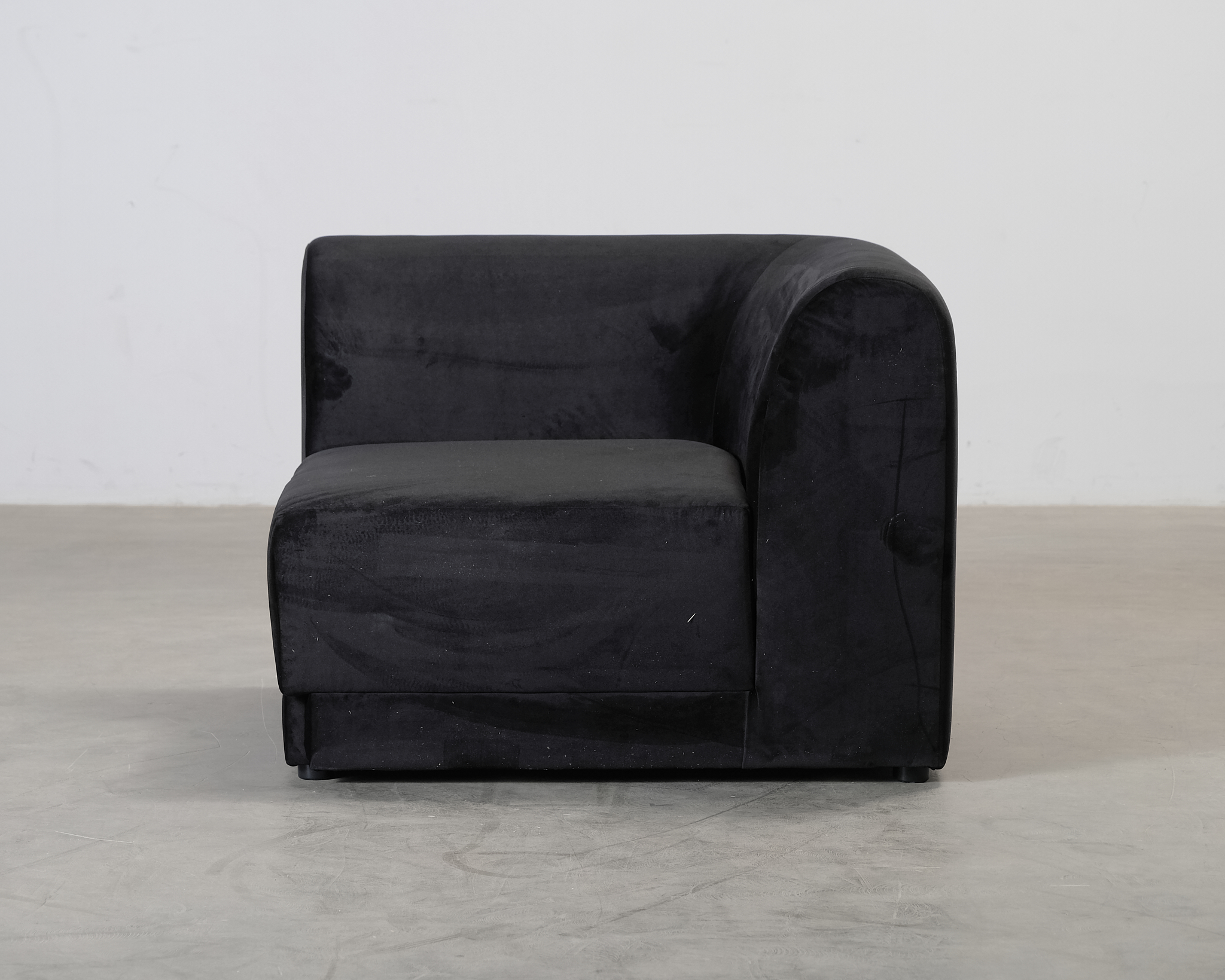 Micadonin valmistama Miley-sarjan sohvamoduuli yhdistää modernin muotoilun ja erinomaisen istuinmukavuuden. Kaunis ja minimlistinen siluetti sekä musta samettiverhoilu viimeistelee moduulin harmonisen ilmeen. Voit käyttää Miley-moduulia yksittäisenä nojatuolina tai yhdistää sen sarjan muihin osiin.