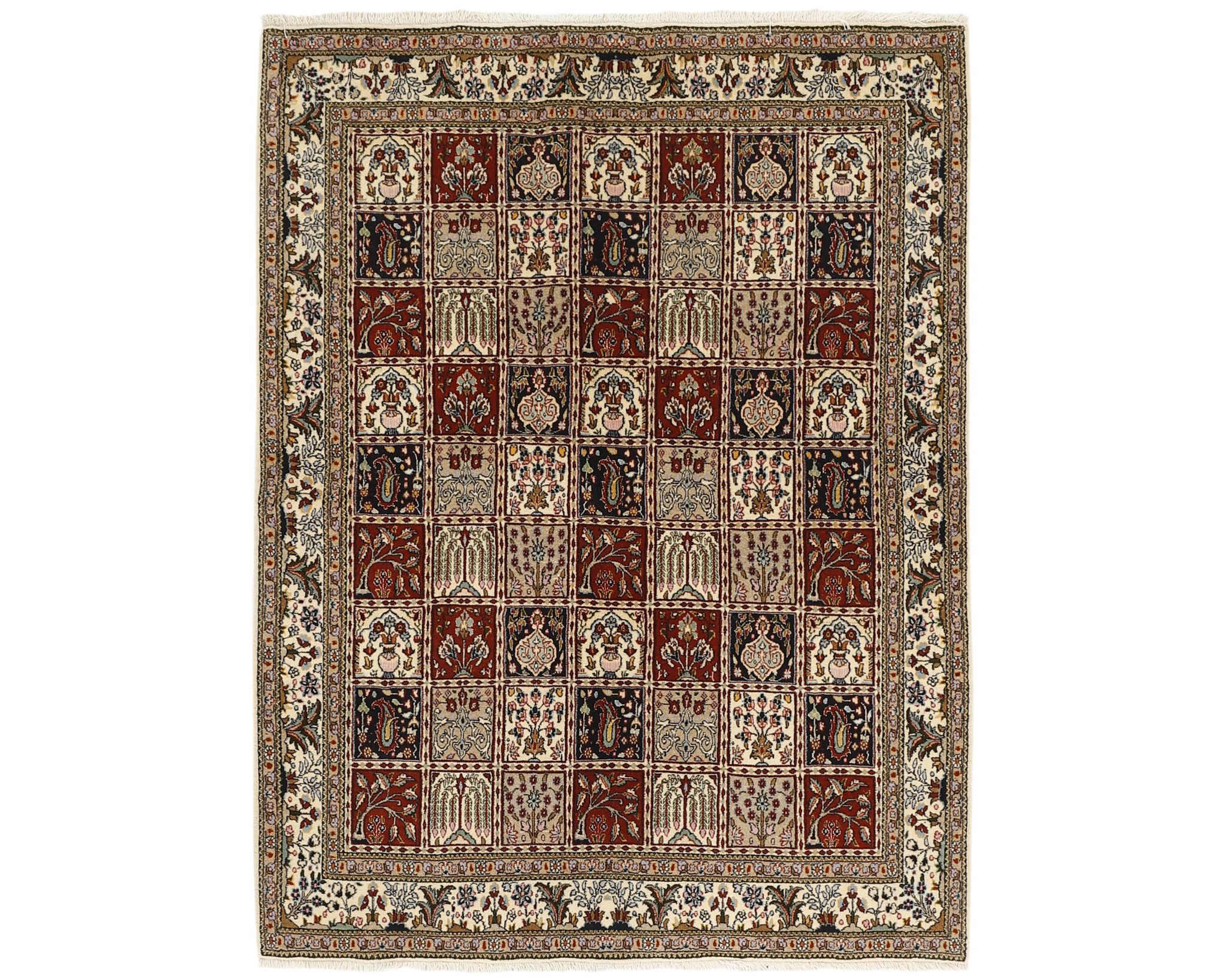 Moud Garden -matot ovat käsinsolmittuja villamattoja, joissa on puuvillinen loimi. Niiden kuviointi koostuu tyylitellystä puutarhakuvioista, jota kehystävät perinteiset persialaiset reunukset. Värimaailma on hillitty ja harmoninen, painottuen norsunluun, sinisen ja ruskean sävyihin. Solmutiheys on 250 000–350 000 solmua neliömetrillä. Käyttämätön.